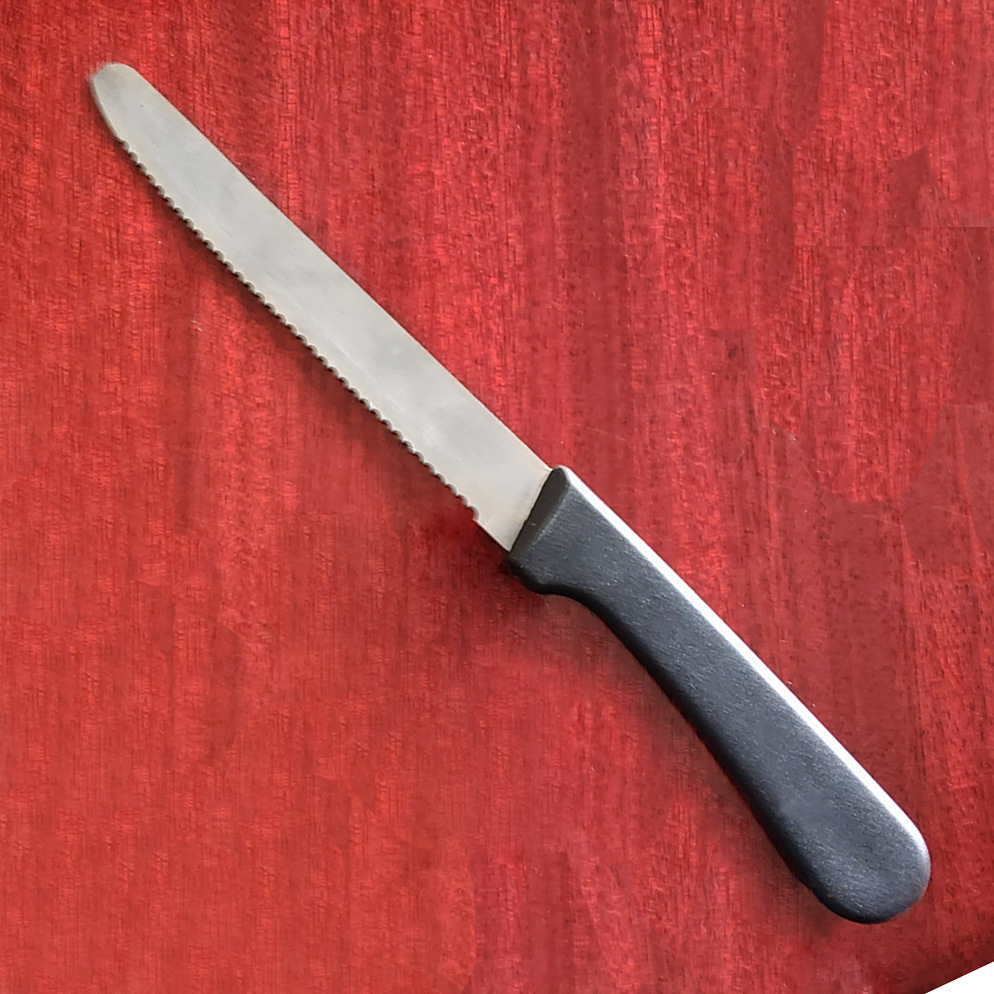 | nameOriginal | Plastic round head steak knife stainless steel kitchen steak pork chop knife fruit knife stainless steel wooden handle steak serrated knife |