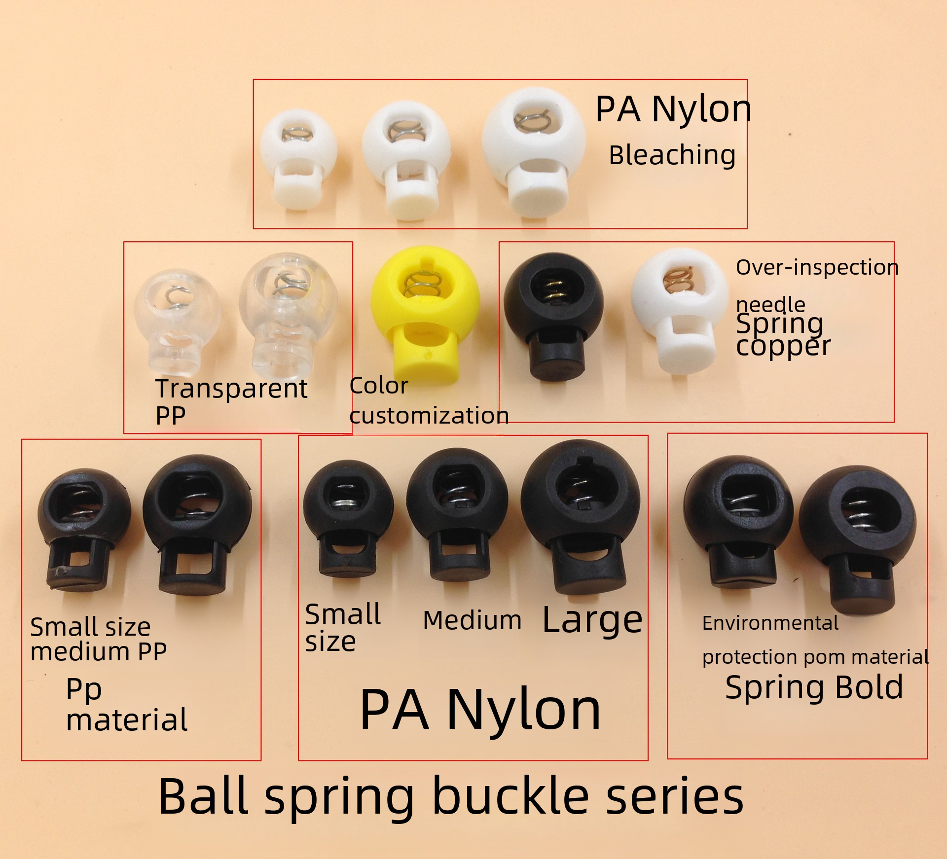 | nameOriginal | Plastic round spring rope buckle nylon single hole buckle tail clip Bell Buckle adjustment buckle customized various colors |