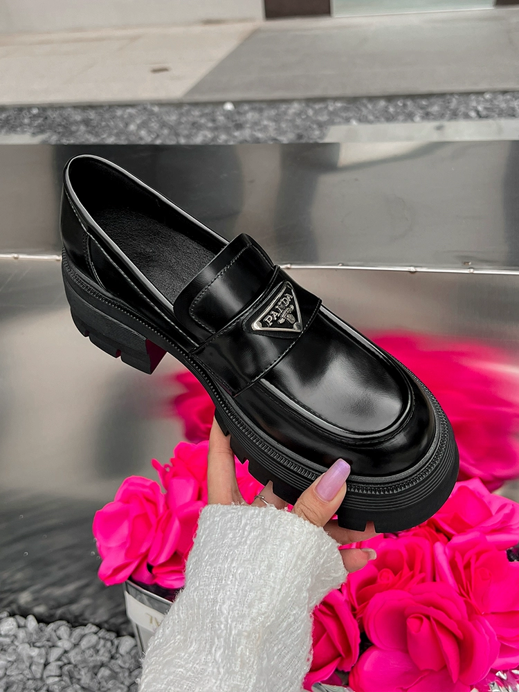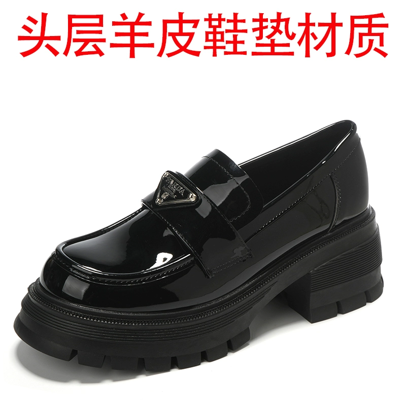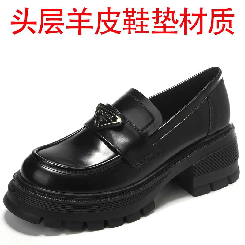 Platform sheepskin autumn and winter British style triangle logo loafers