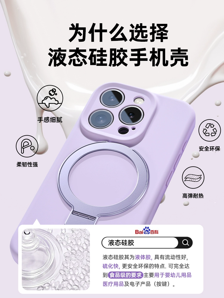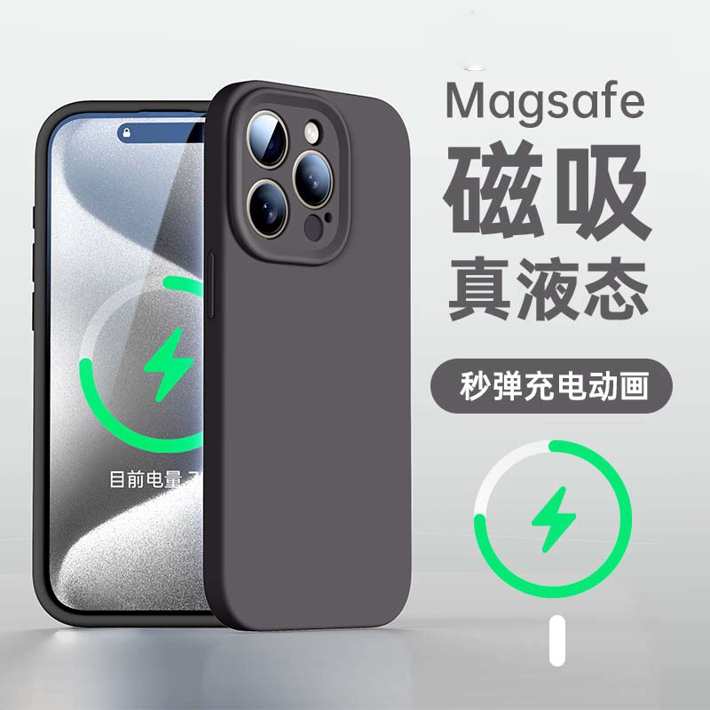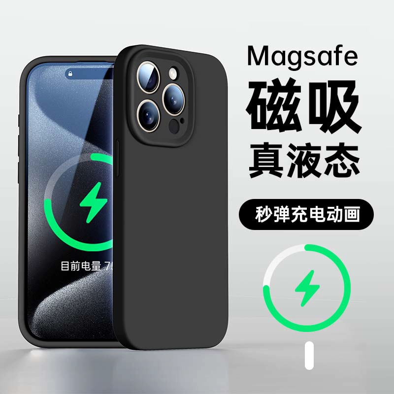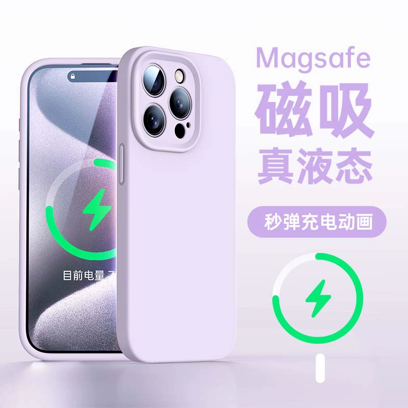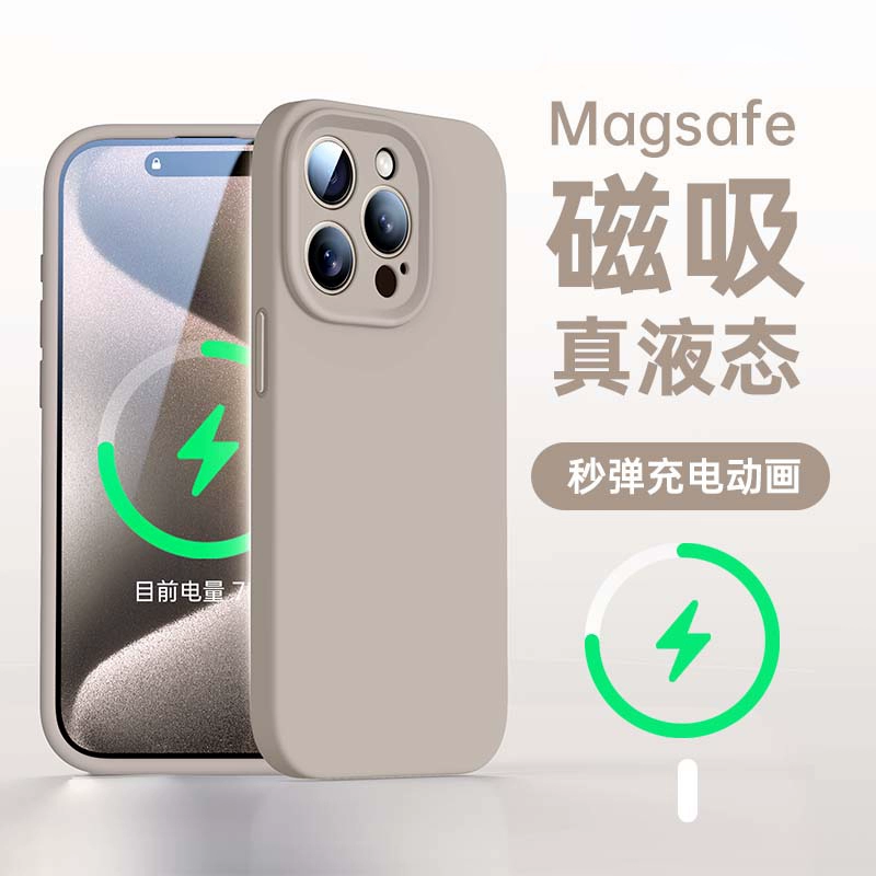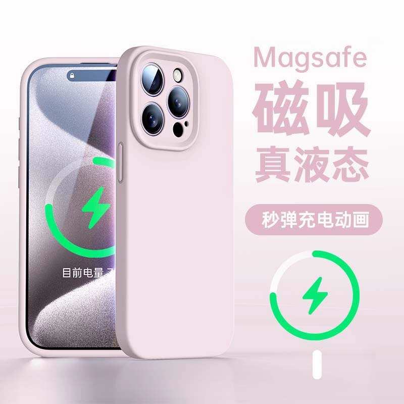 Platinum liquid silicone Magsafe magnetic holder suitable for Apple 15promax mobile phone case iPhone15 sense new solid color pivot 14 all-inclusive lens soft cover 13pro female anti-fall couple