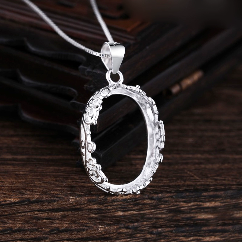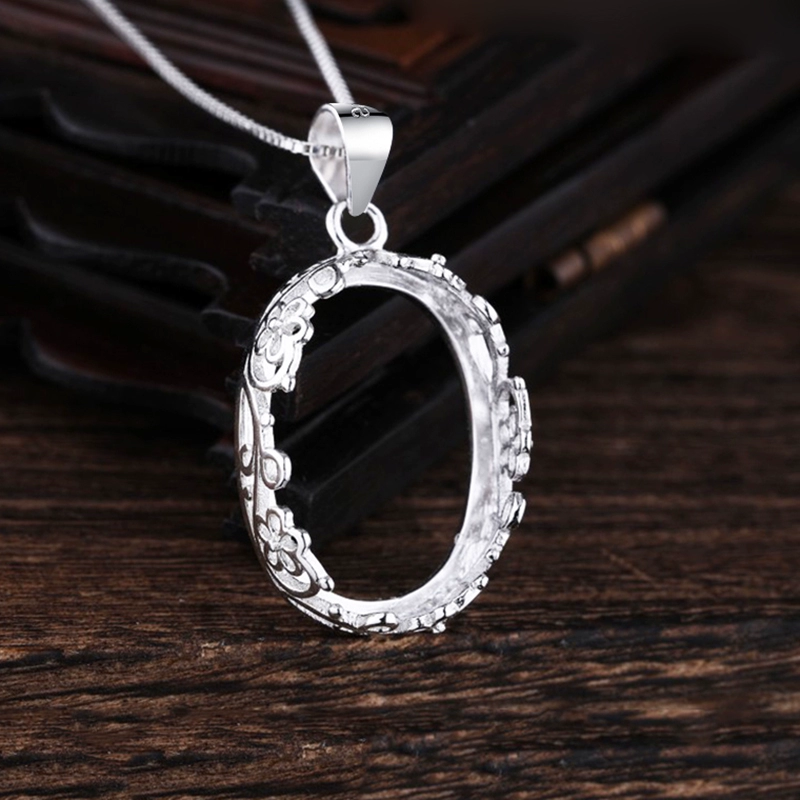 Platinum-plated women's turquoise amber pendant empty holder