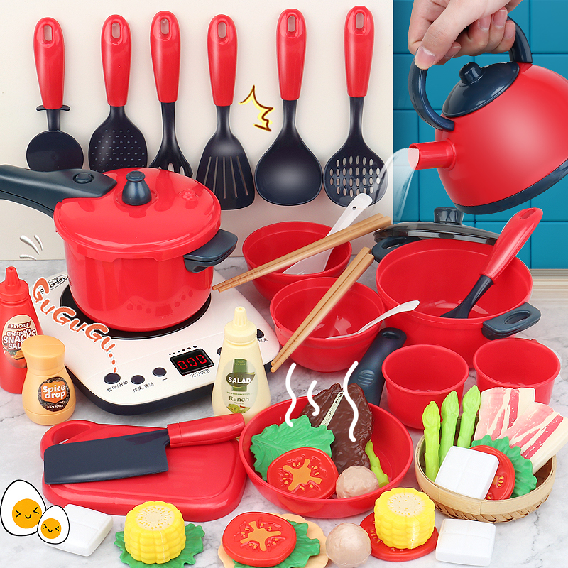 Play house large induction cooker kitchen toys baby cooking girls pressure cooker children's kitchenware suit 3