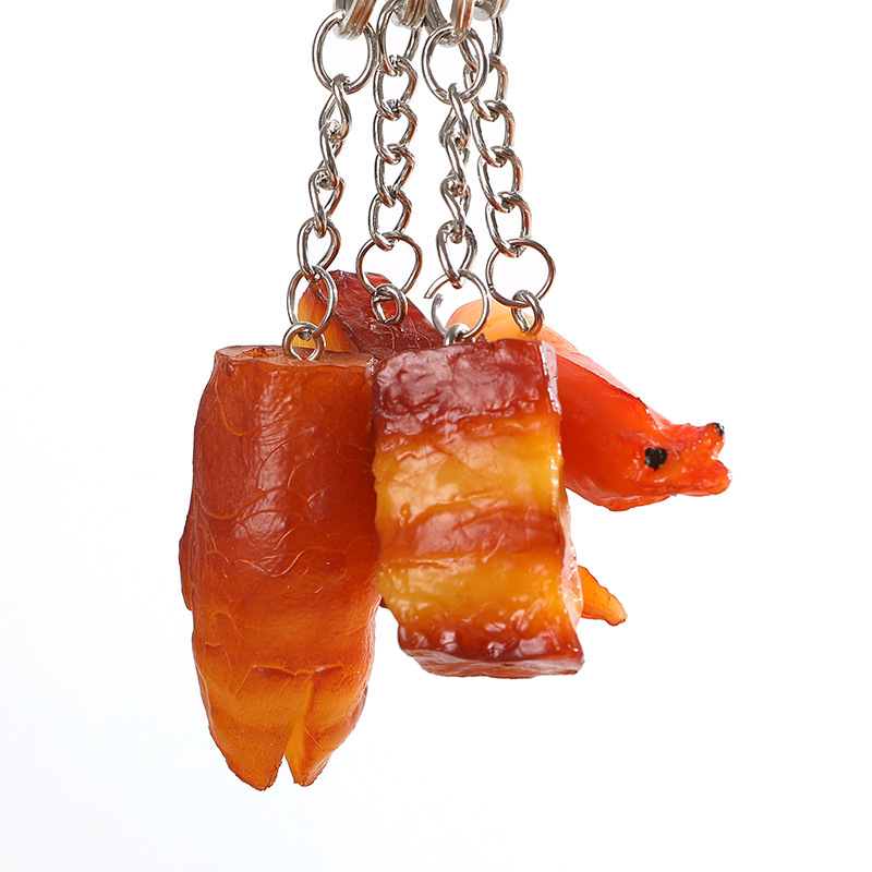 | nameOriginal | Play house toy PVC simulation food food model fake chicken wings pig trotters roast chicken backpack key ring pendant |
