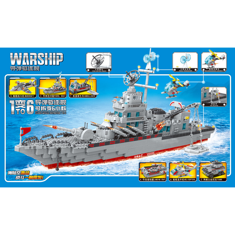 Playing house DIY assembled missile destroyer building blocks K0679 parent-child interactive disassembly tank helicopter model