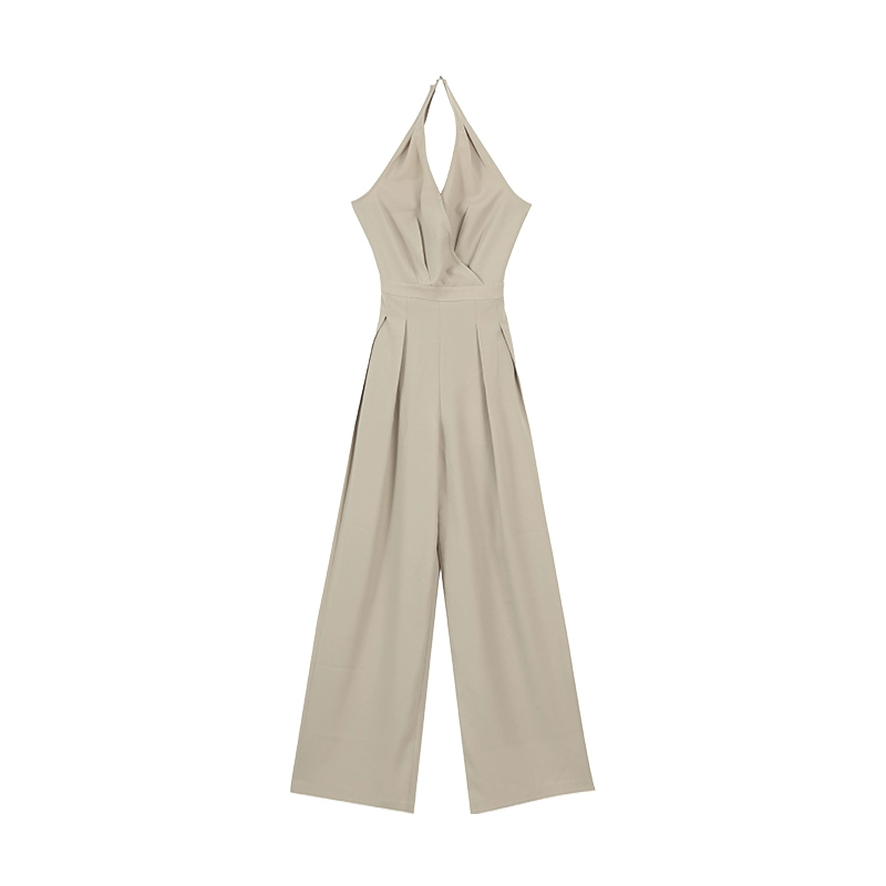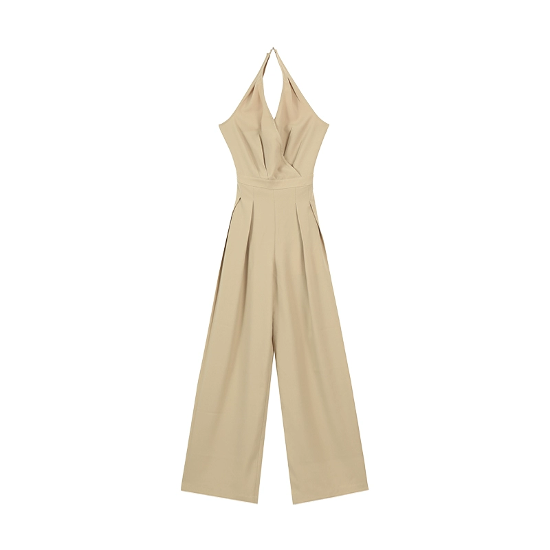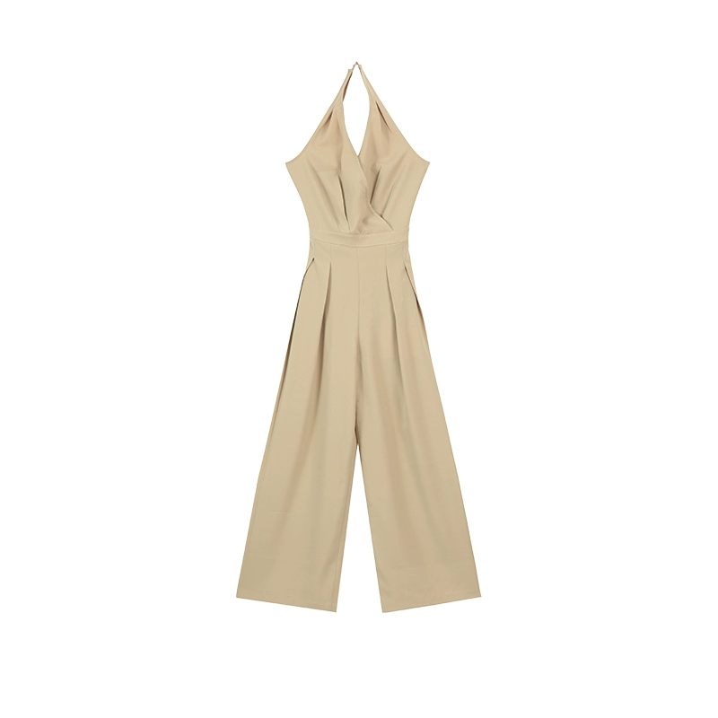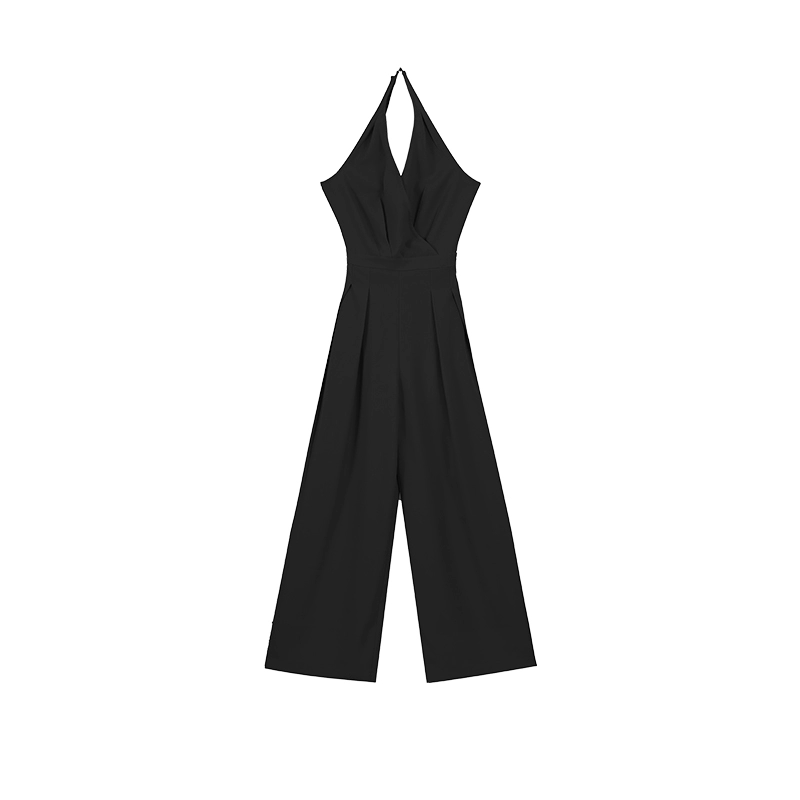 | nameOriginal | Pleasurable Black V-neck Halter Sleeveless Jumpsuit Women's Summer Casual Style Waist Slim Wide Leg Mid-Length Pants |