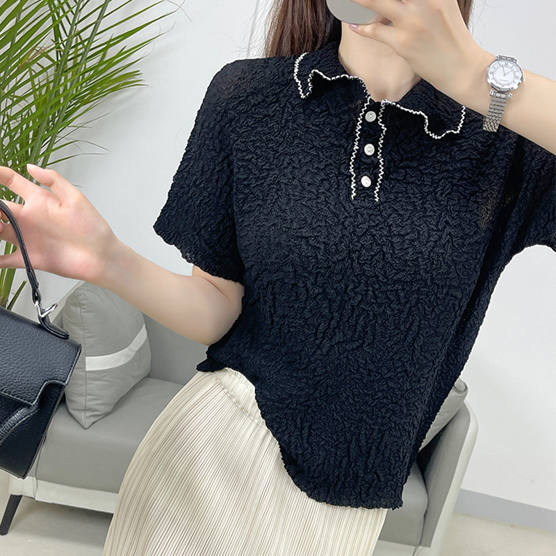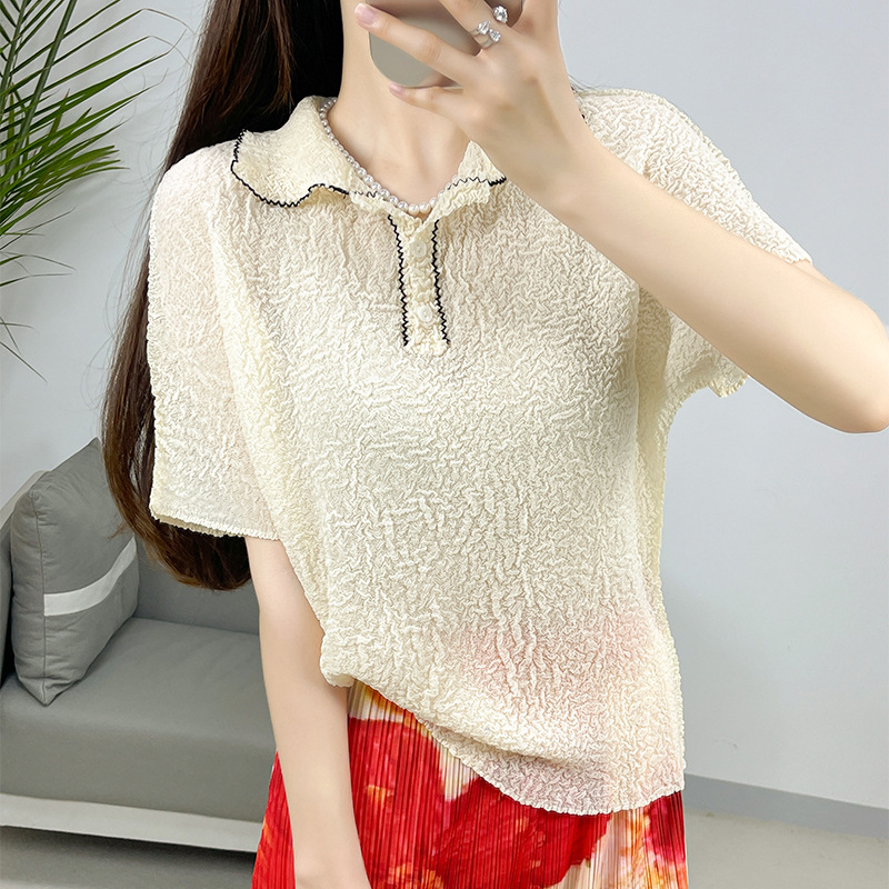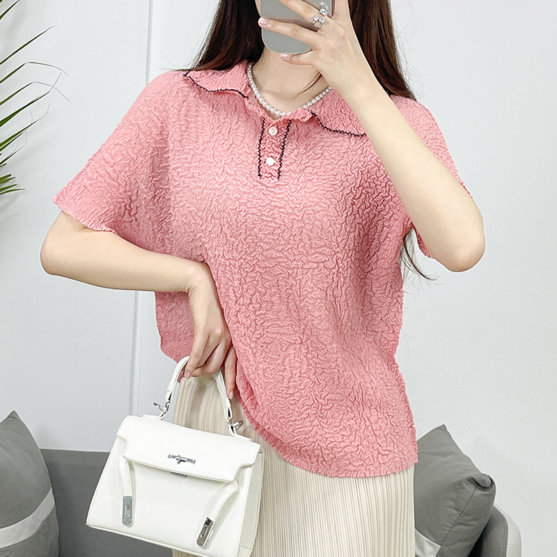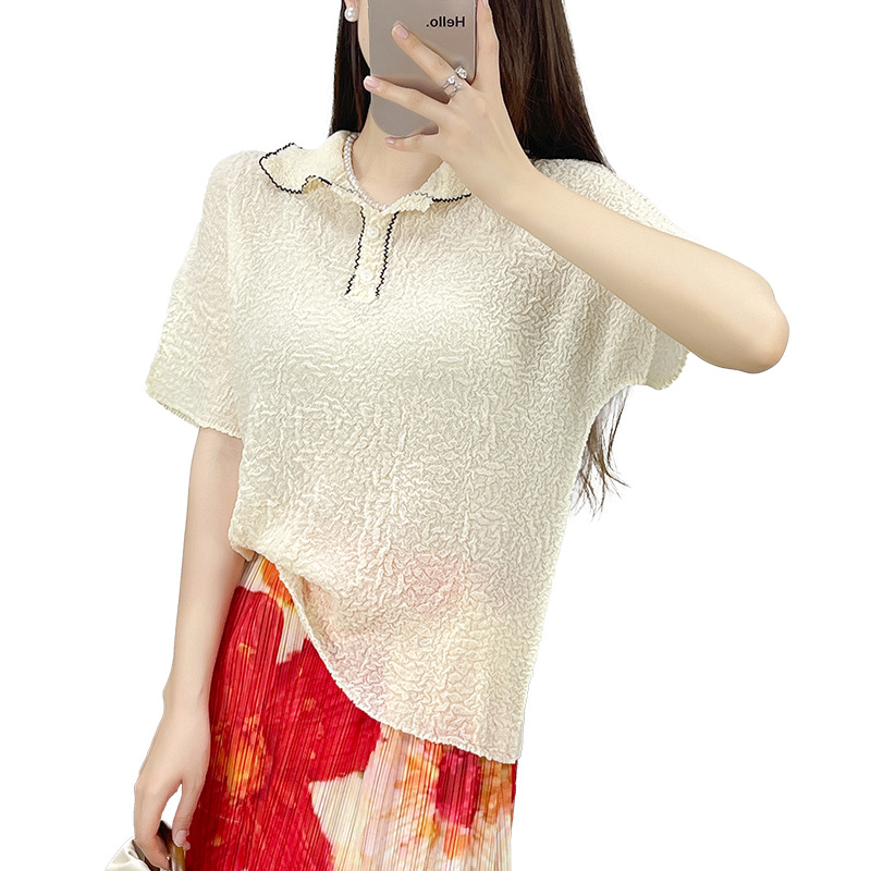 | nameOriginal | Pleated 2024 Summer New Casual Miyake High-end Elegant Short-sleeved Polo Shirt Women's Solid Color Slim-fit Top |