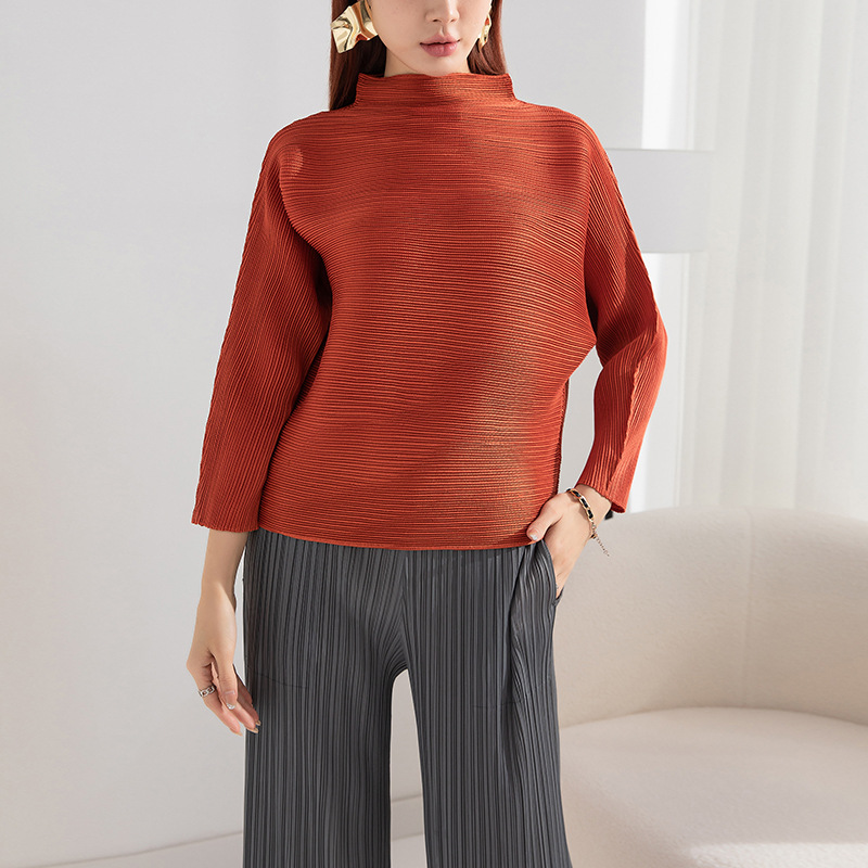 | nameOriginal | Pleated Base Shirt Half High Collar Women's 2022 Autumn and Winter New Fashionable Loose Large Size Inner Stretch Outer Wear Top |
