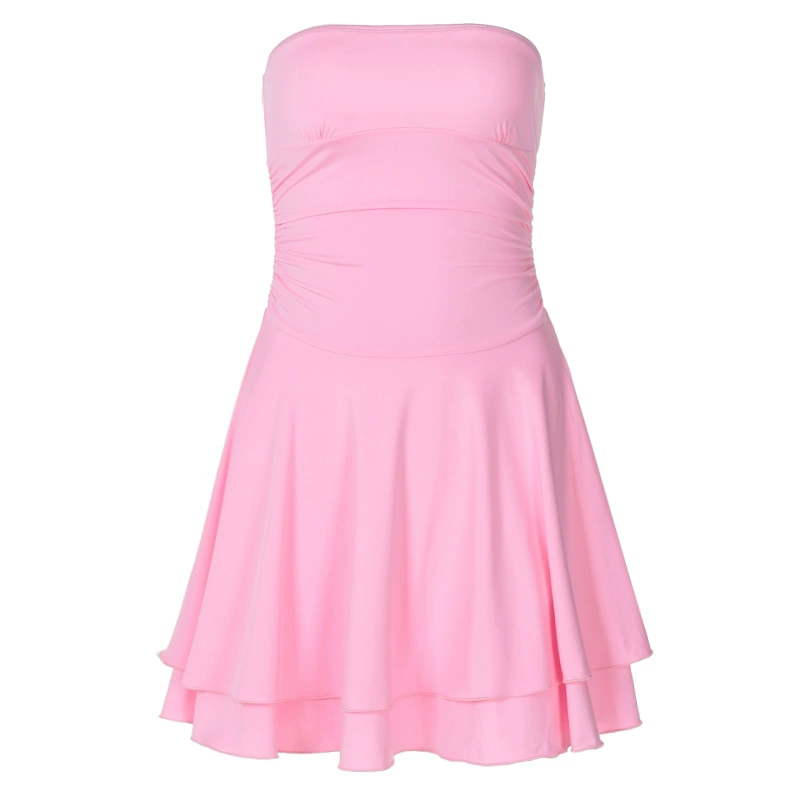| nameOriginal | Pleated bateau neck stretch slim dress tube top |