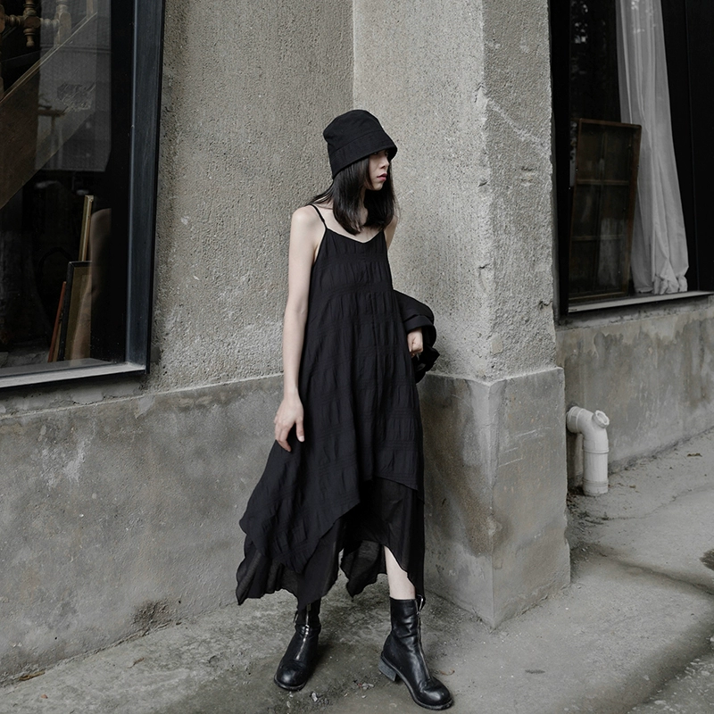| nameOriginal | Pleated dark homemade irregular mourning suspender skirt |
