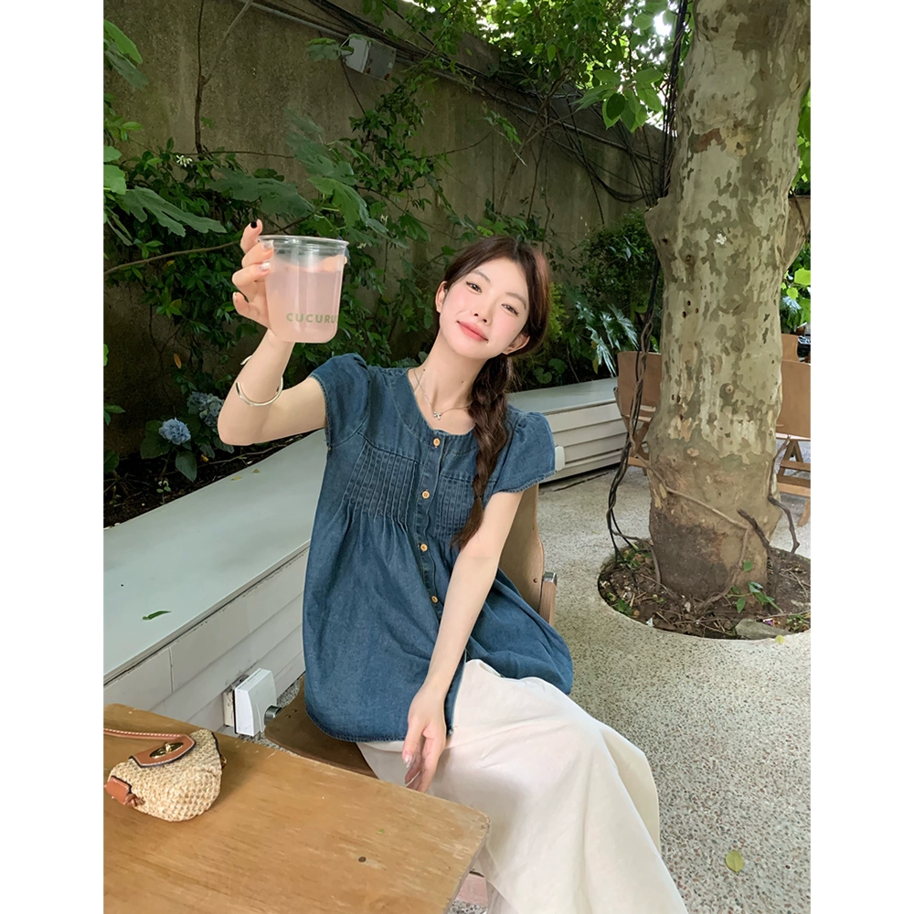 | nameOriginal | Pleated denim loose design niche top short sleeves |