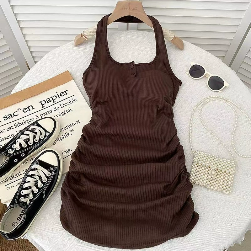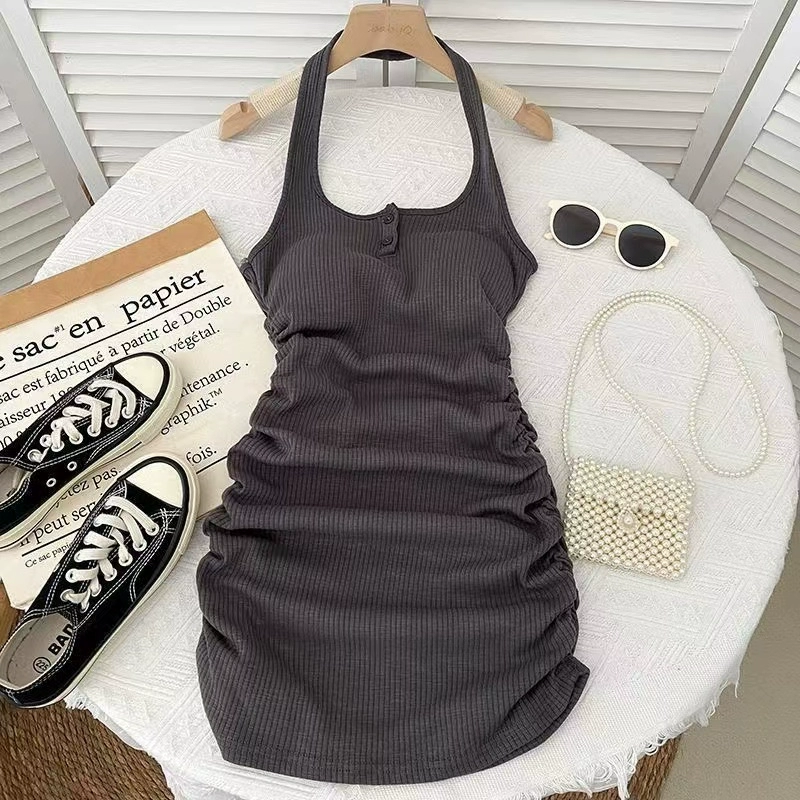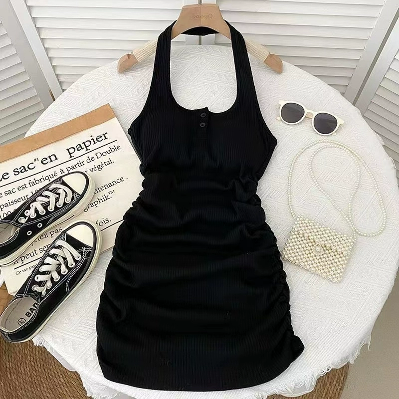 | nameOriginal | Pleated dress new summer slim fit hip-hugging halterneck |
