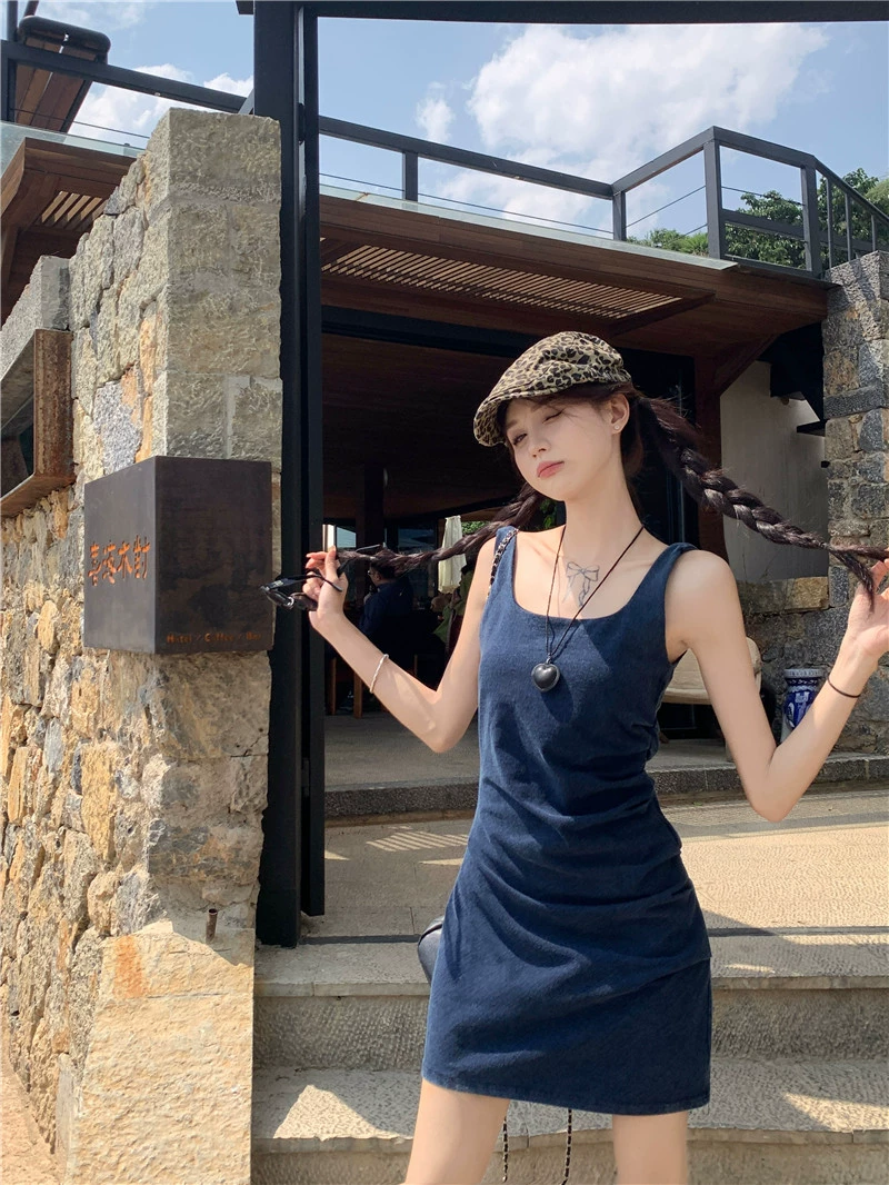 | nameOriginal | Pleated Dress Summer Retro Slim Washed Denim |
