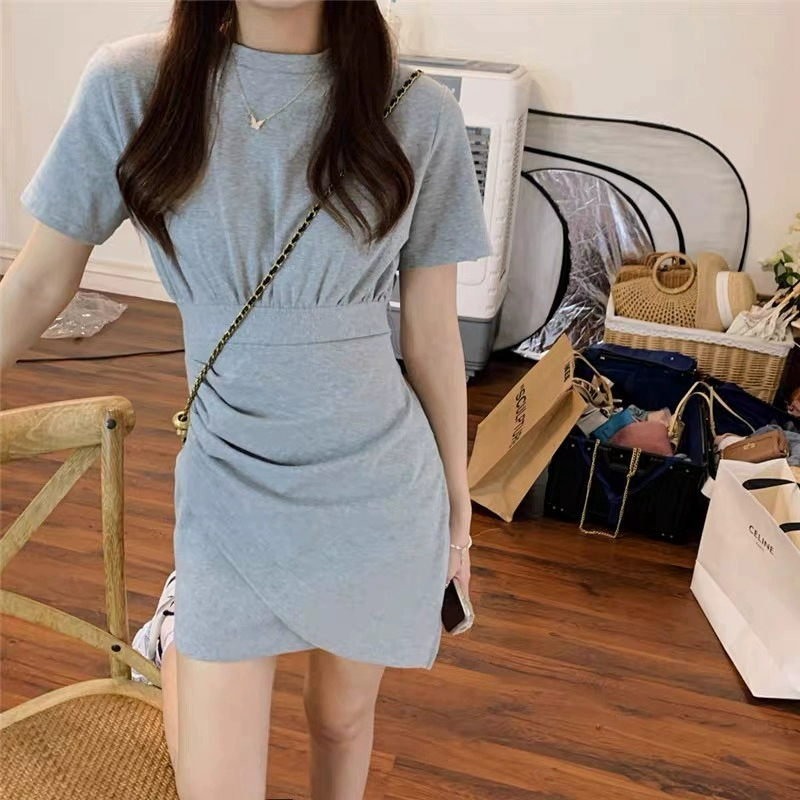 | nameOriginal | Pleated French irregular slimming T-shirt dress |