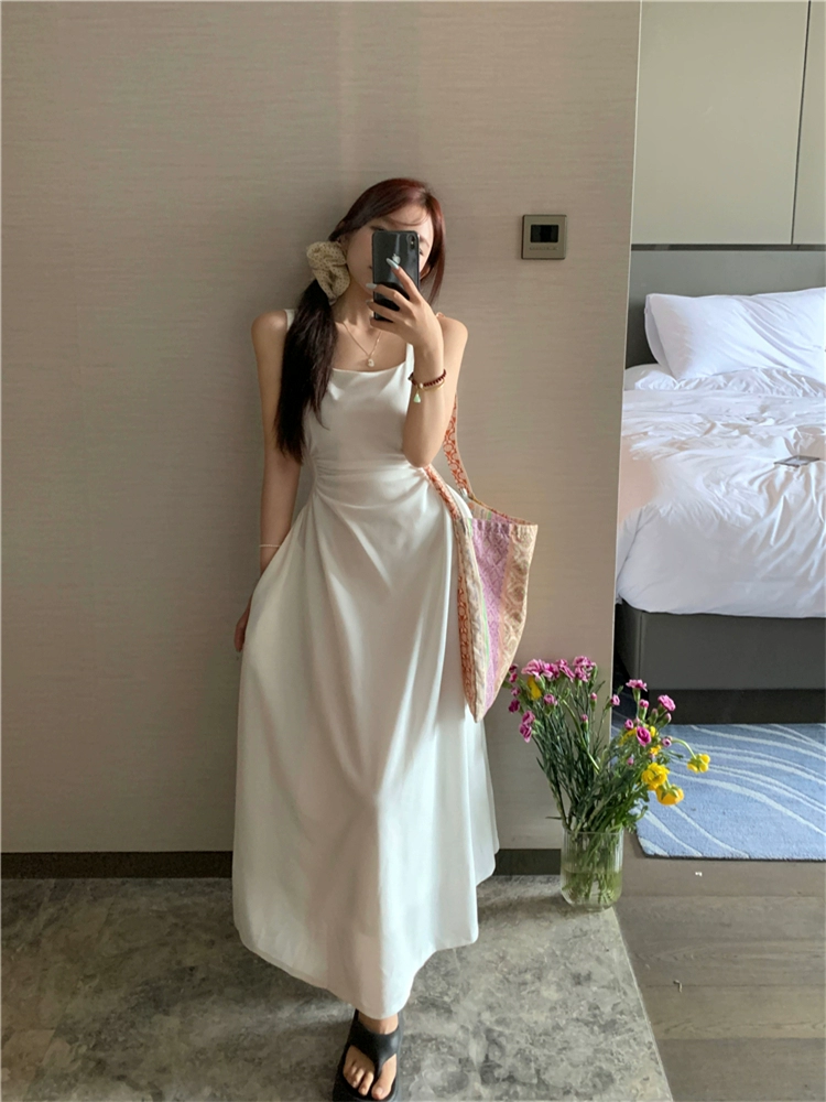 Pleated French Summer White Waist Slip Dress