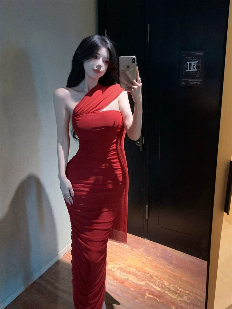 | nameOriginal | Pleated high-end red dress summer tube top |