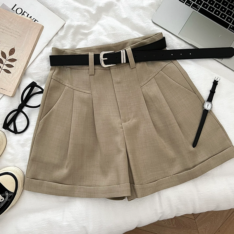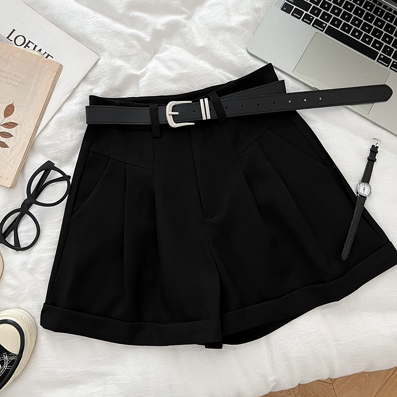 | nameOriginal | Pleated high-waist rolled hem fashionable wide-leg pants with belt |