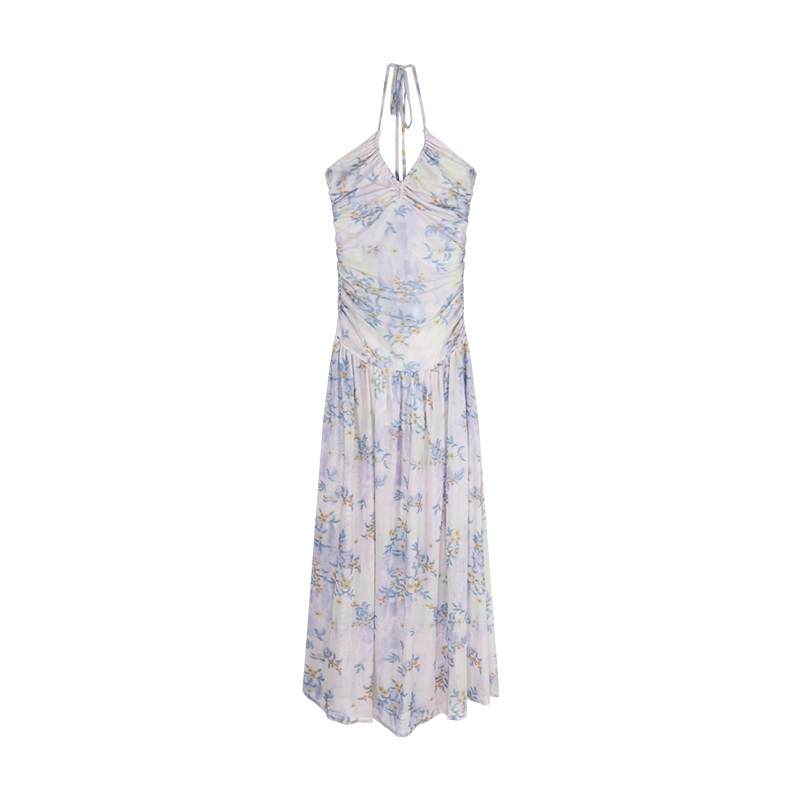 | nameOriginal | Pleated hot girl dress summer mesh slimming halter neck |