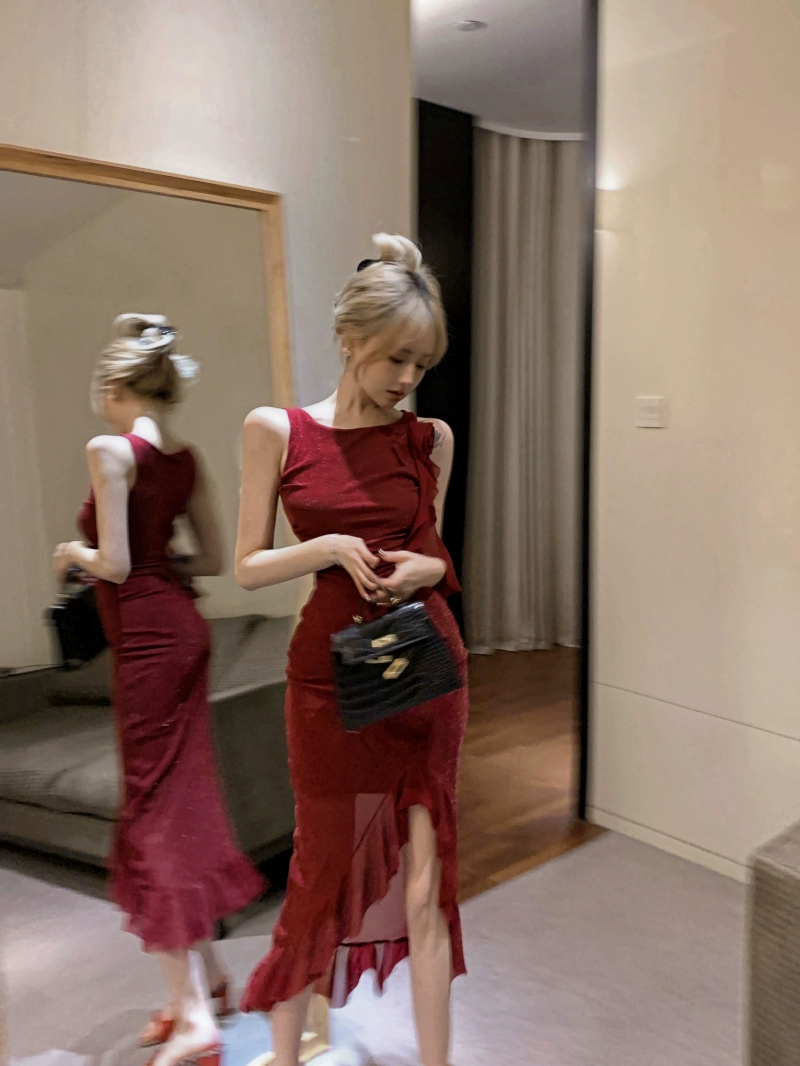 | nameOriginal | Pleated irregular dress summer slim vest |