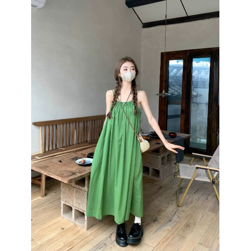 Pleated kumikumi summer loose suspender dress