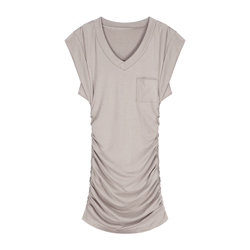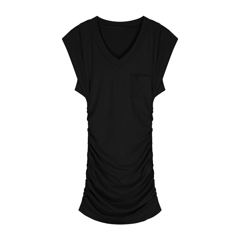 | nameOriginal | Pleated little flying sleeve dress summer hot girl v-neck T-shirt |