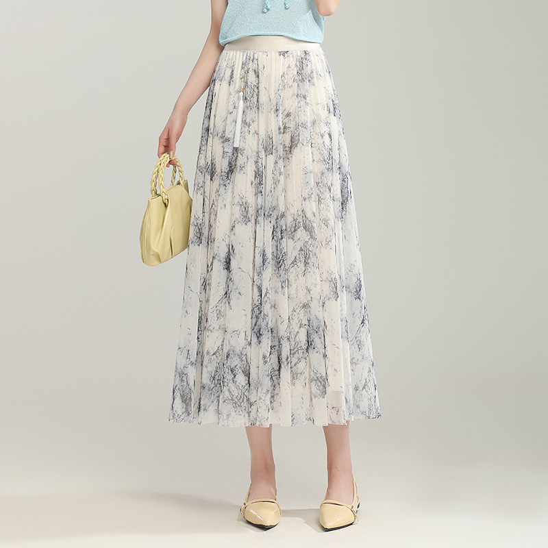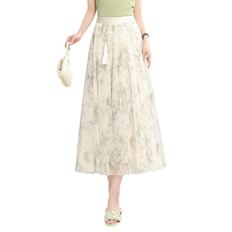 Pleated Long Skirt Skirt Spring Women’s Little A- line Skirt Women’s Umbrella Skirt A- line Skirt High-end Female Printed Wholesale