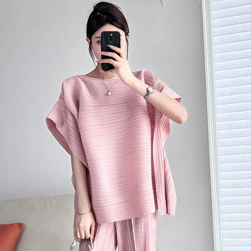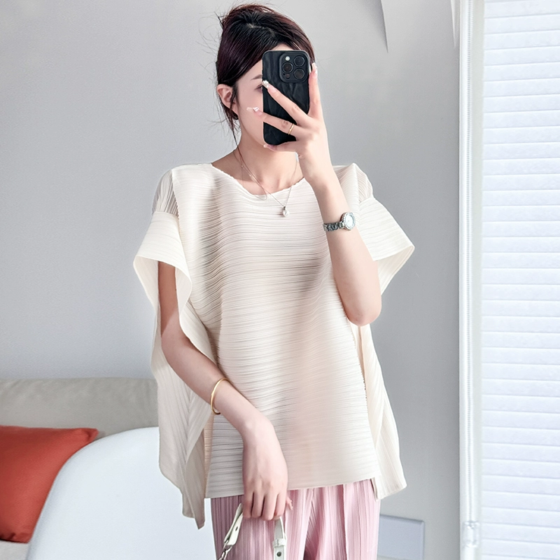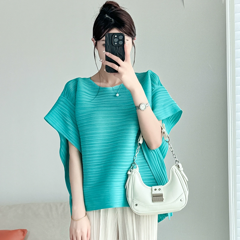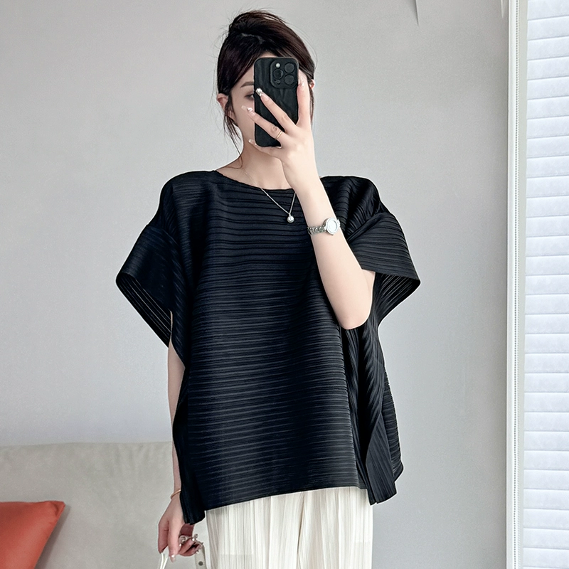 | nameOriginal | Pleated loose round neck flesh-covering T-shirt thin short-sleeved top |