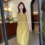 | nameOriginal | Pleated METWO avocado casual cotton and linen dress |