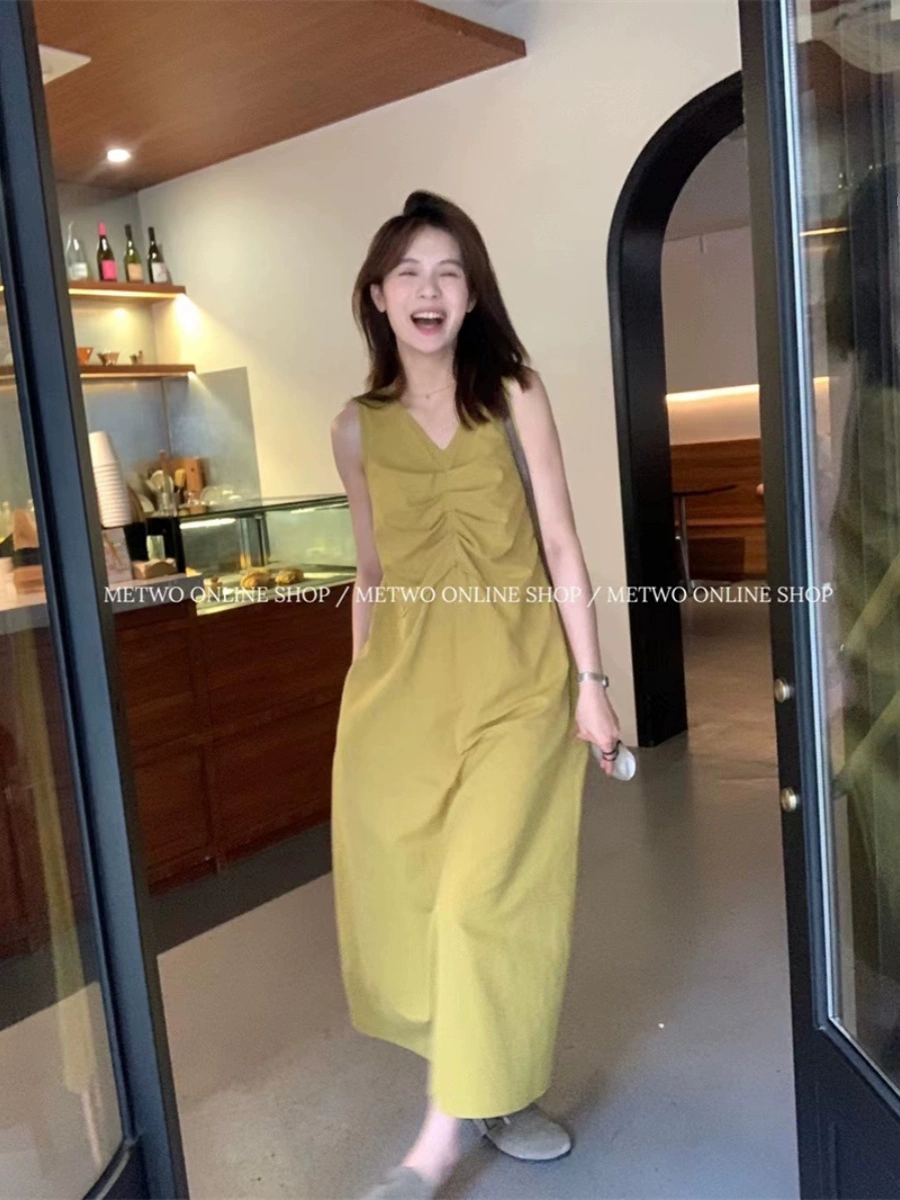| nameOriginal | Pleated METWO avocado casual cotton and linen dress |