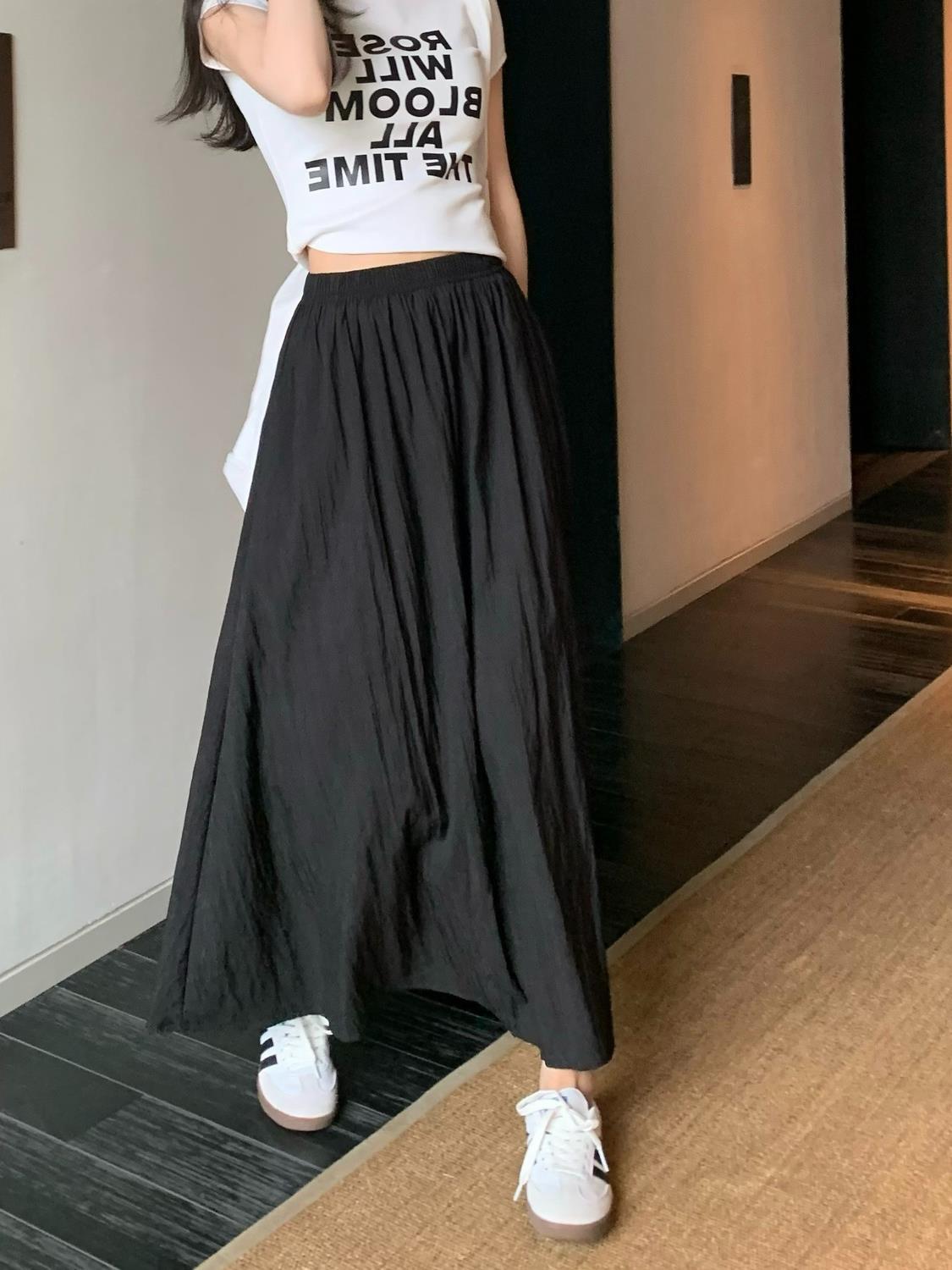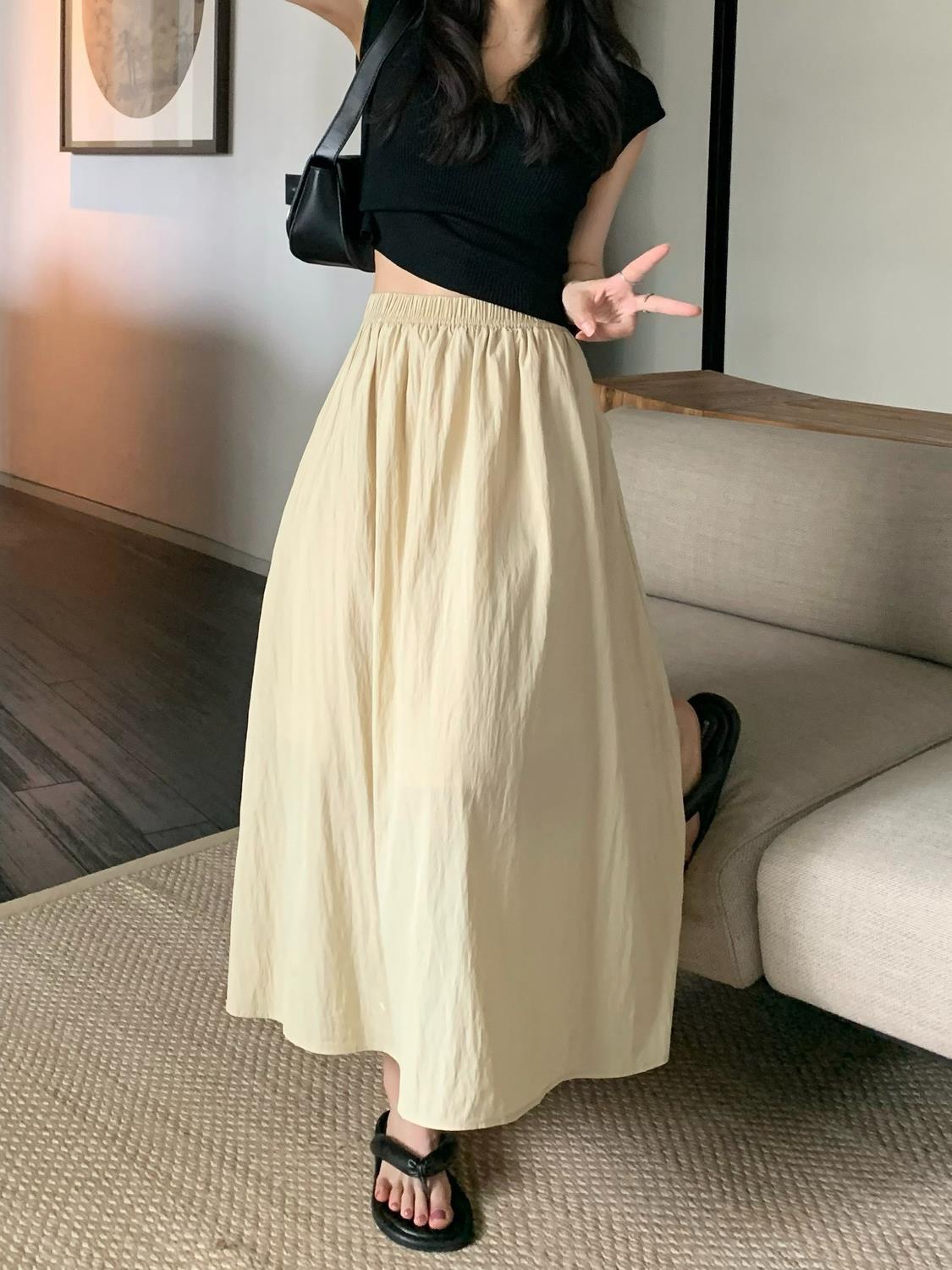 | nameOriginal | Pleated Mid-length Skirt Women's Summer 2024 New Retro High Waist Slimming Loose Waist A- line Skirt Umbrella Skirt |