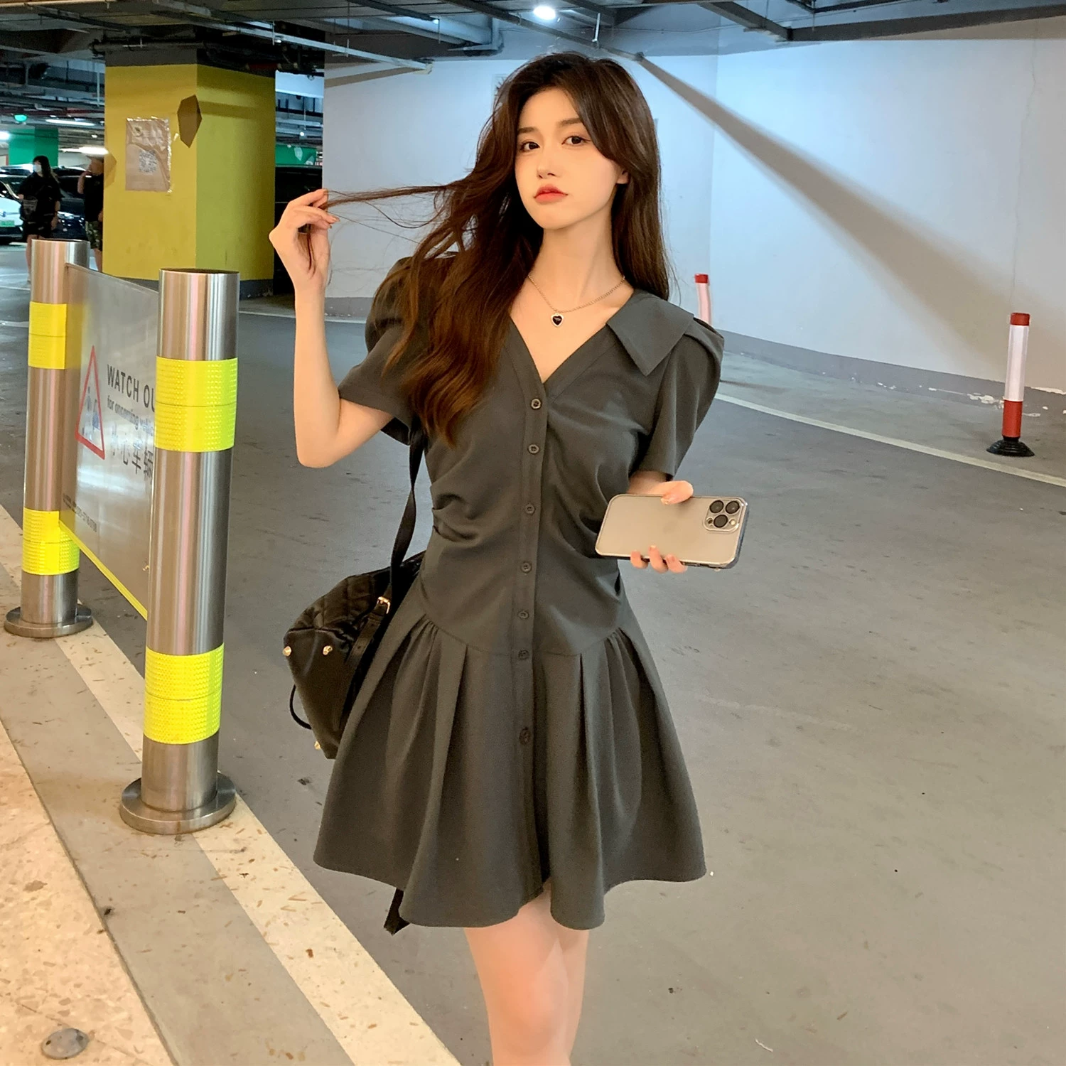 | nameOriginal | Pleated pink fat girl slimming sweet summer dress |