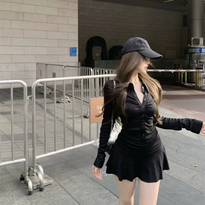 | nameOriginal | Pleated polo neck summer slim long-sleeved dress |