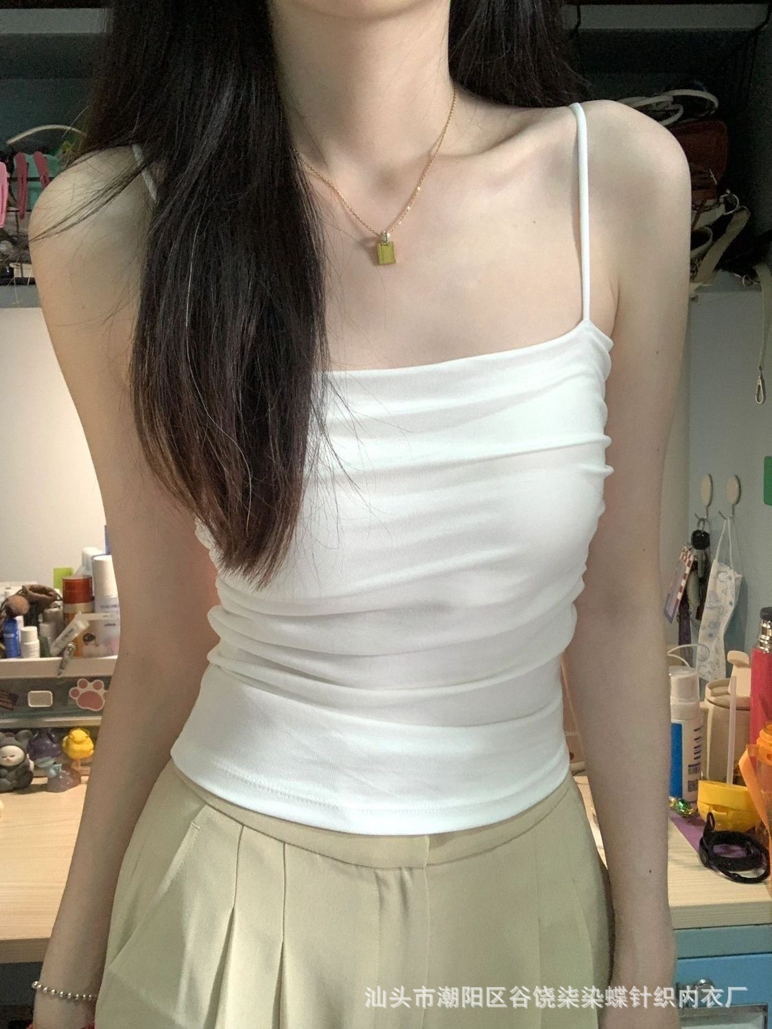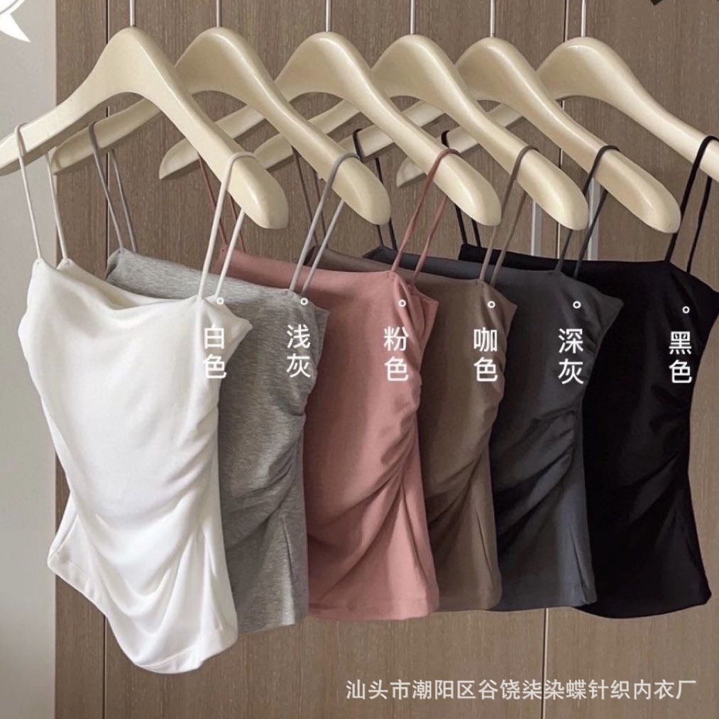 | nameOriginal | Pleated Pure White Camisole Women's Summer Inner Wear with Chest Pad Sweet Spice Girl Outer Wear Slimming Beautiful Back Sleeveless Top |