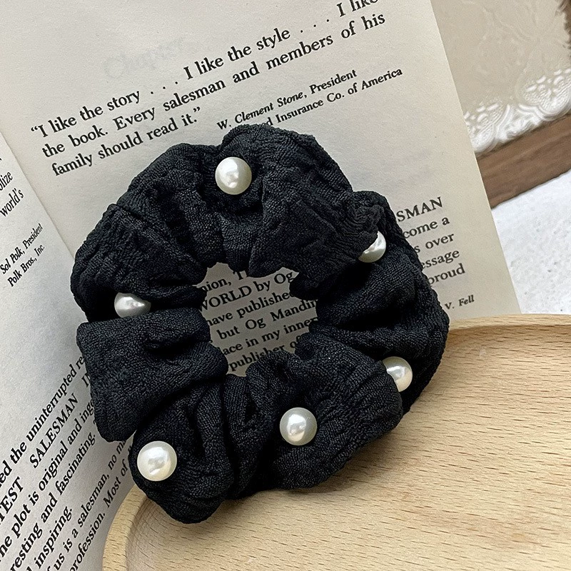 Wrinkled bubble yarn cream pearls large intestine circle women’s ins new French high-end hair circle girl’s daily hair accessories