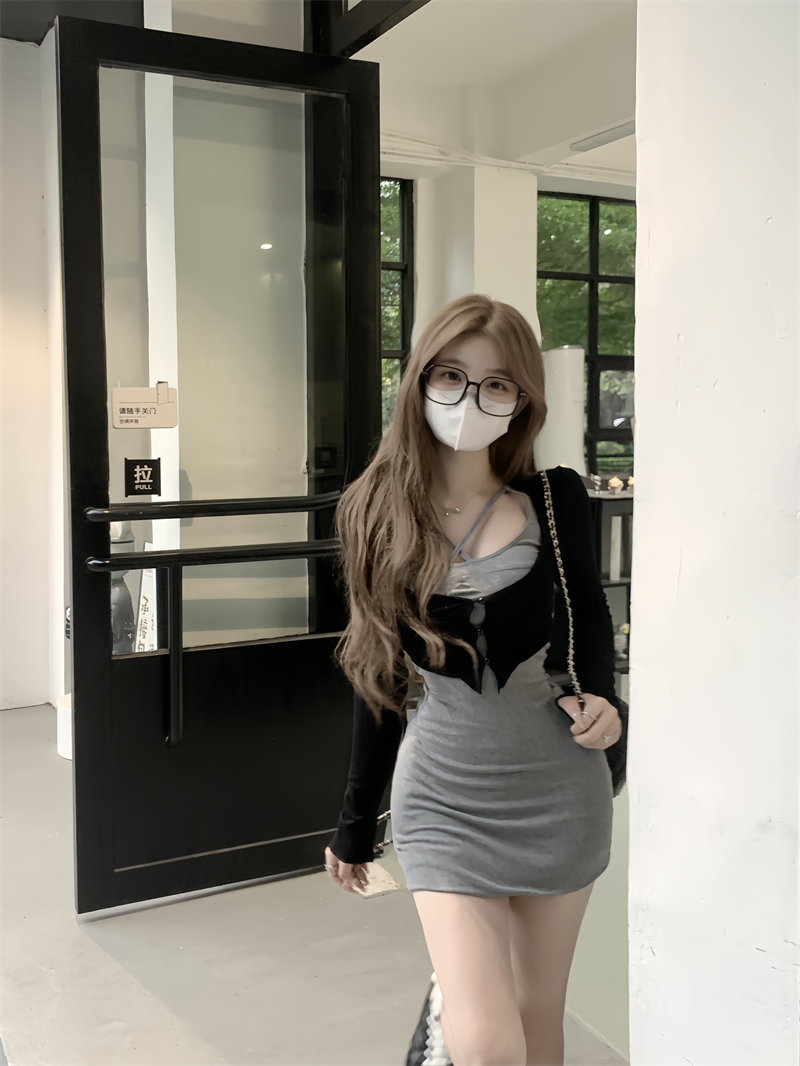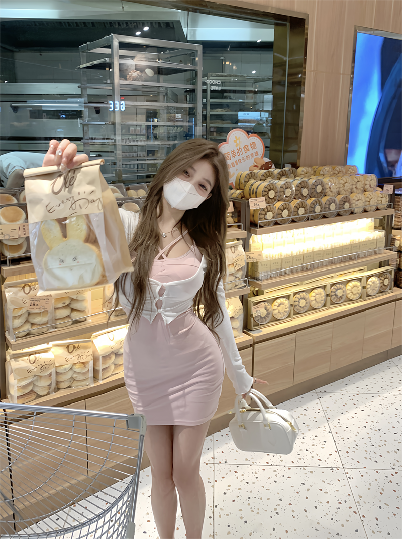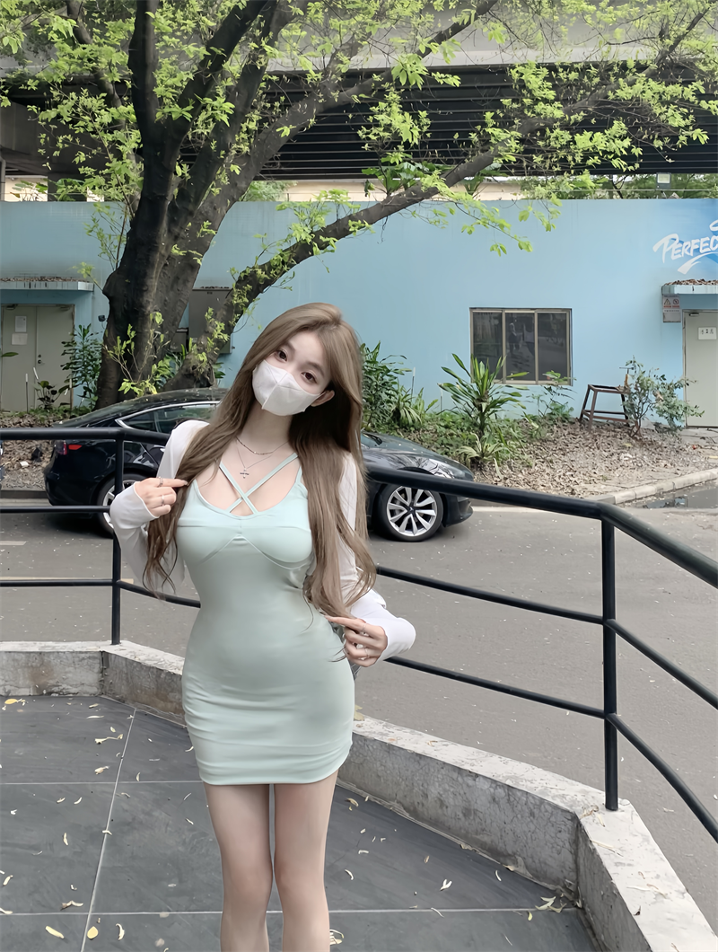 Pleated sexy dress summer tight cross suspenders