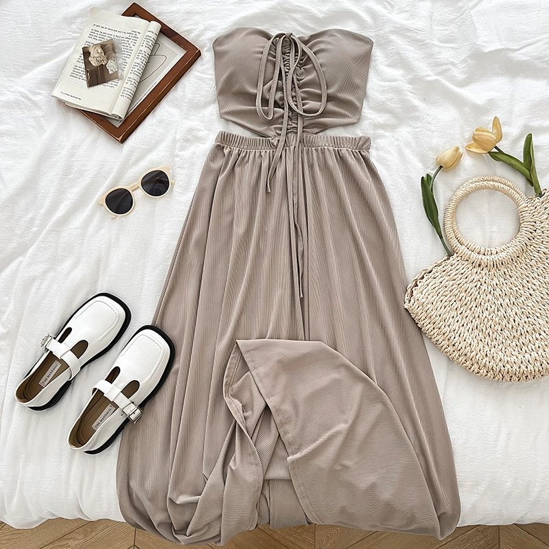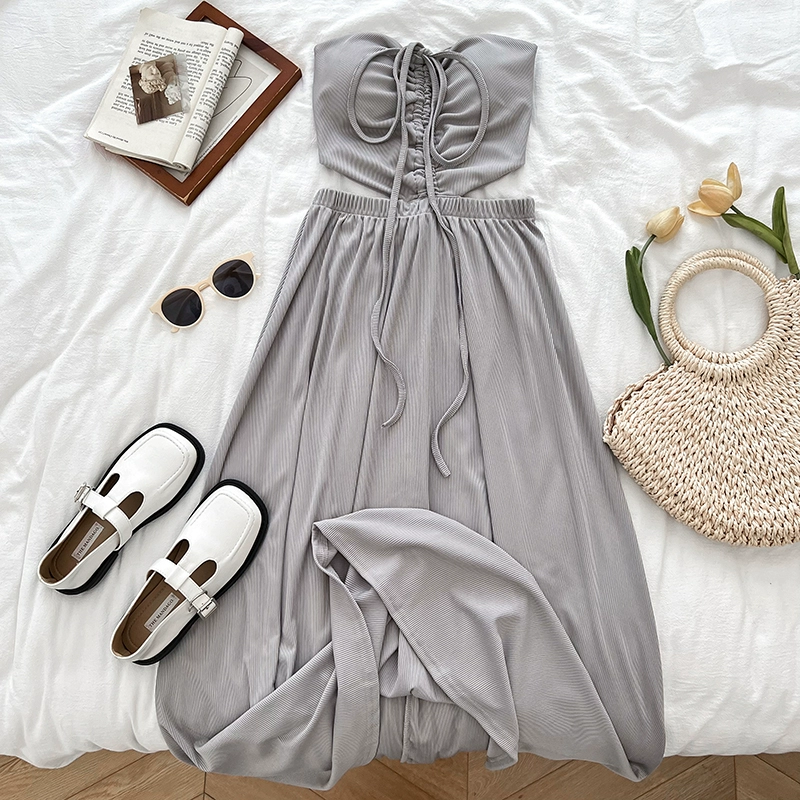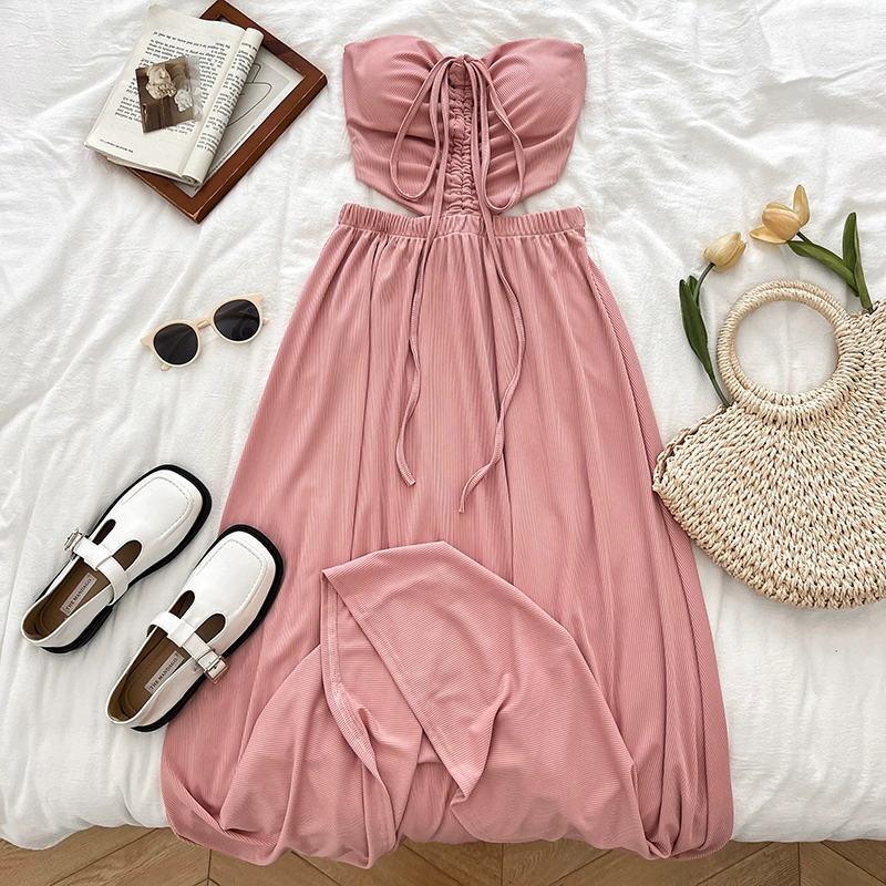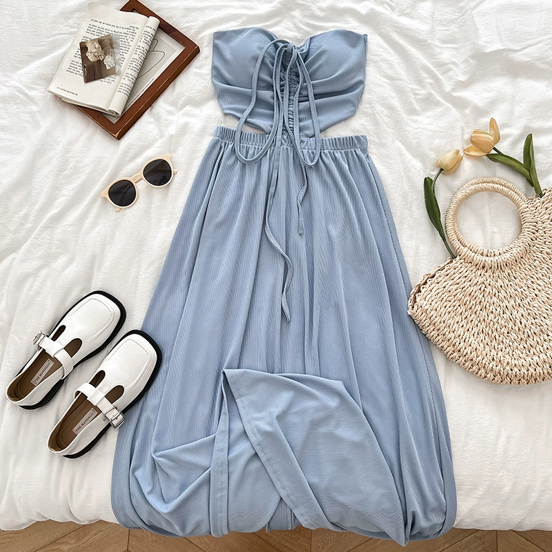 Pleated Sexy Slim Dress Summer New Style Halter Neck