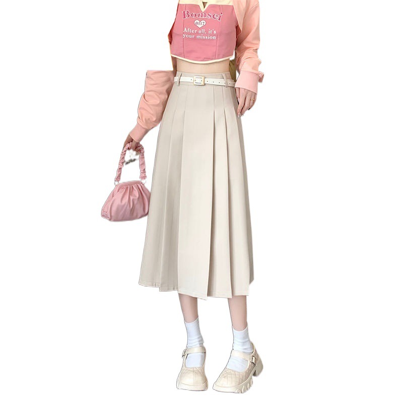 | nameOriginal | Pleated Skirt Women's Spring and Summer 2024 New Korean Style All-match High Waist Mid-length Slimming Elegant A- line Skirt |