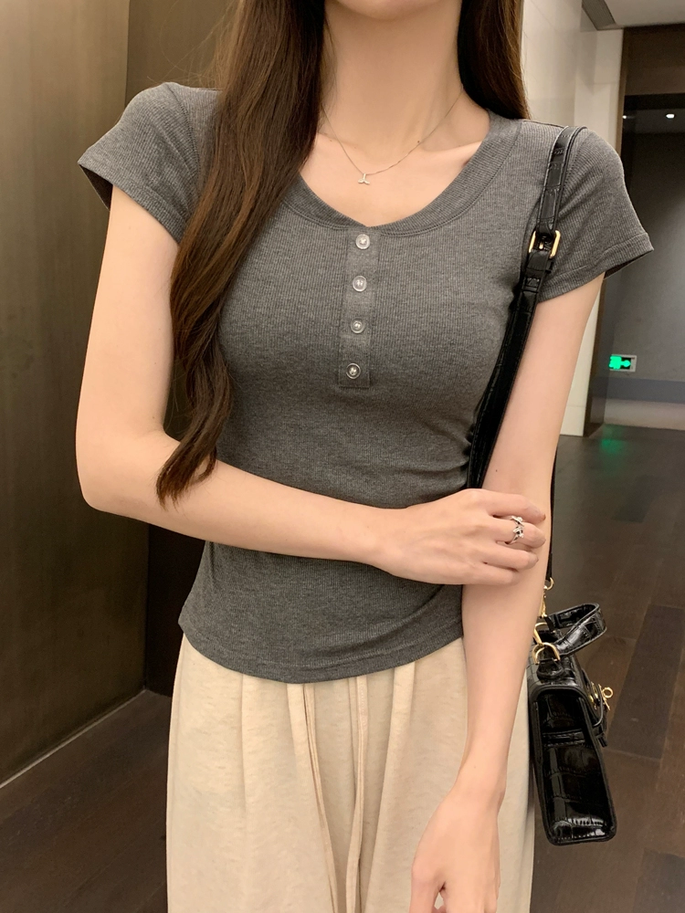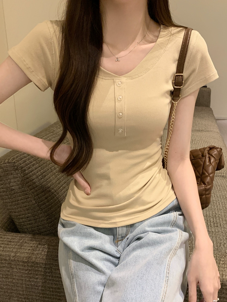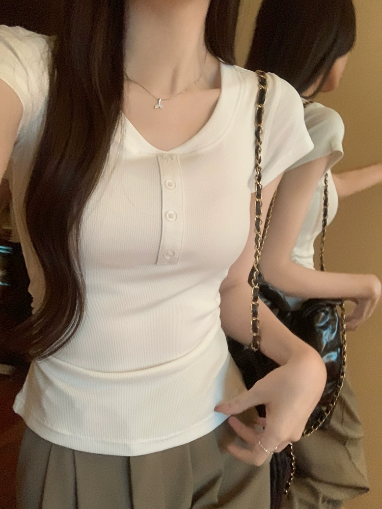 | nameOriginal | Pleated Slim Fit Waist Top Round Neck Short Sleeve T-Shirt |
