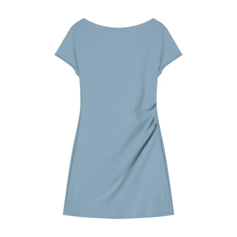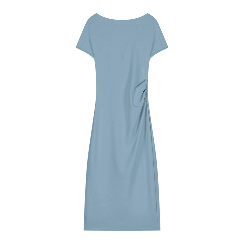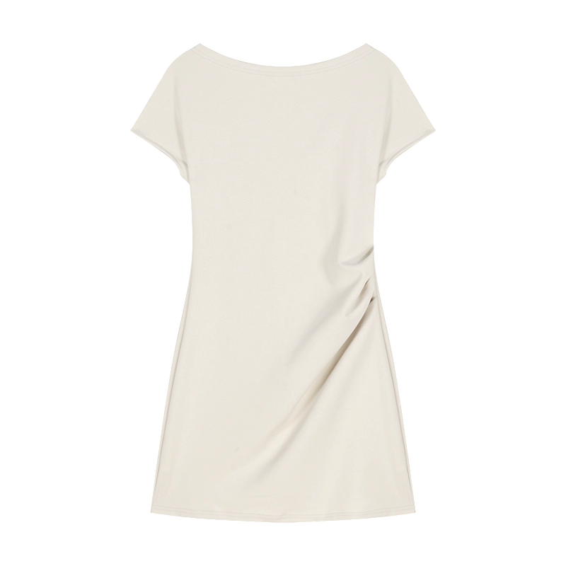 | nameOriginal | Pleated solid color one-shoulder summer slim dress |
