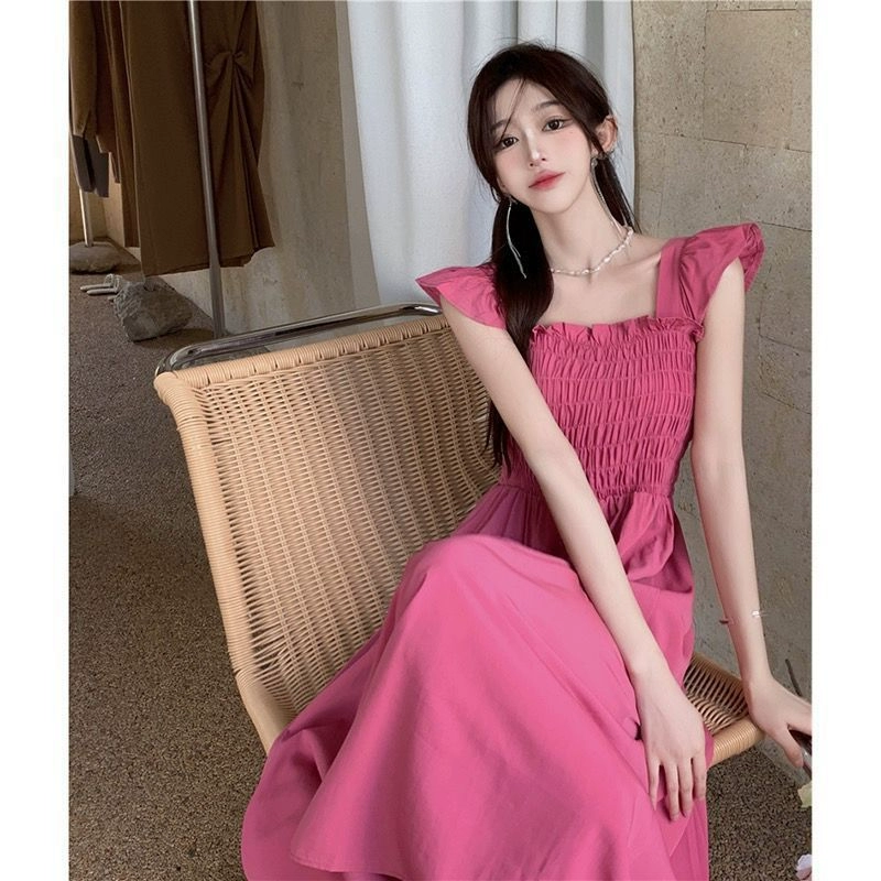 | nameOriginal | Pleated summer French style small flying sleeve dress |