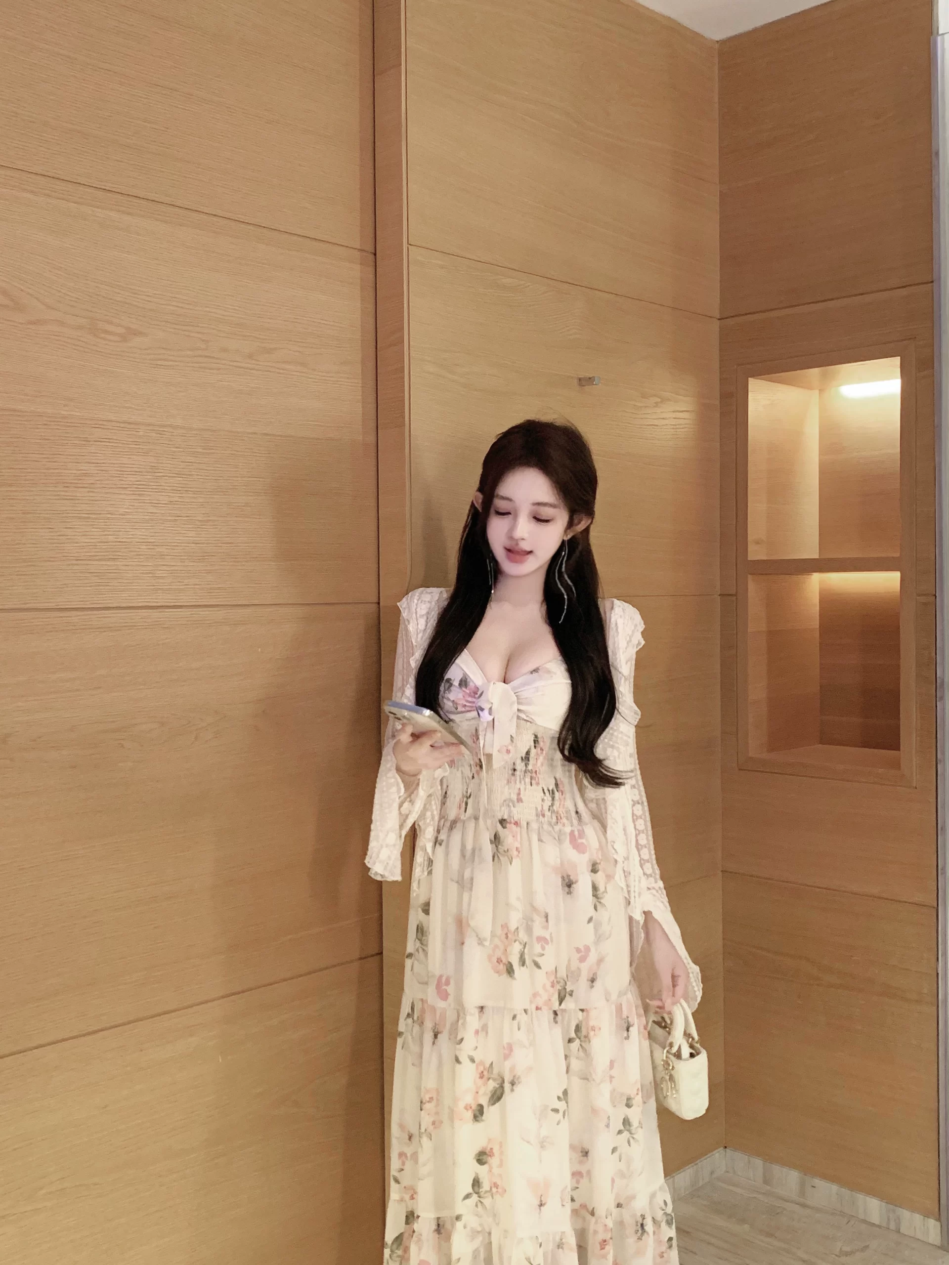 | nameOriginal | Pleated summer long dress, sexy v-neck, a-line floral suspender |