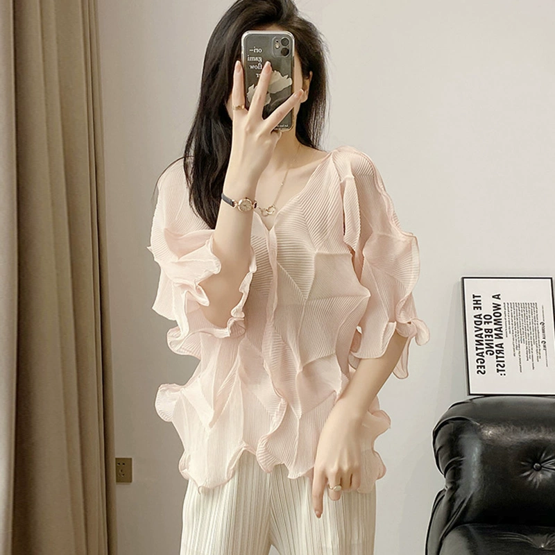 | nameOriginal | Pleated summer loose high-end white T-shirt top |