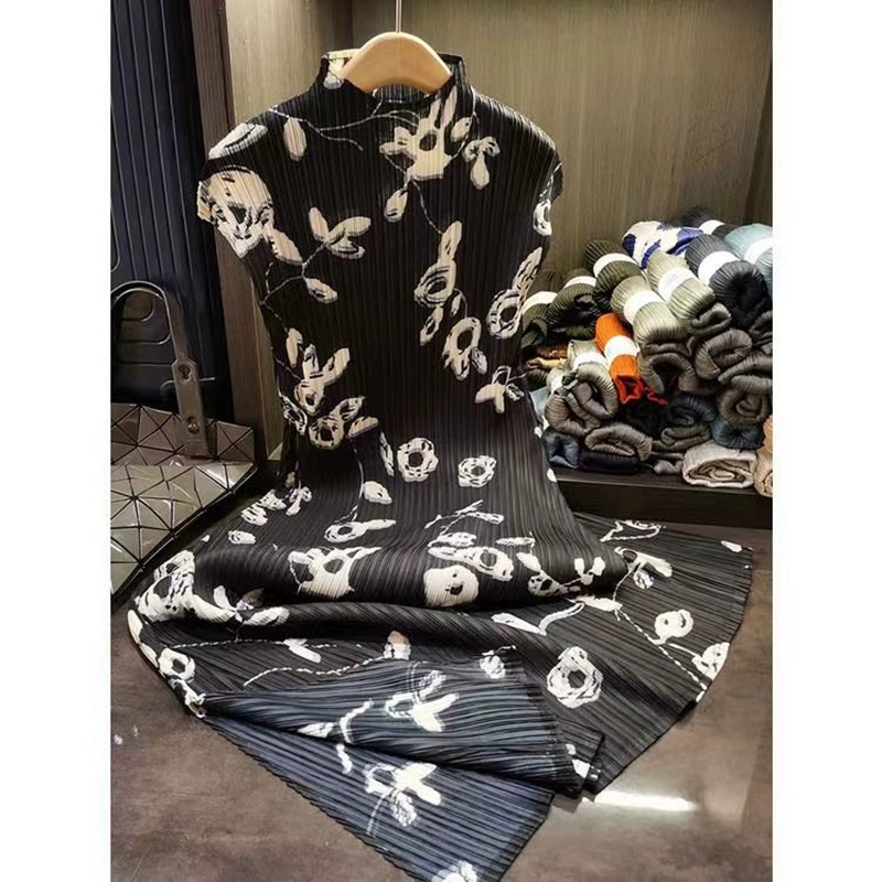| nameOriginal | Pleated Summer Miyake Stand Collar Short Sleeve Elegant Dress |