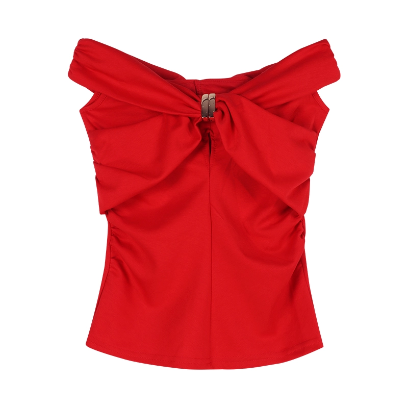 Pleated summer slim-fitting top short-sleeved T-shirt