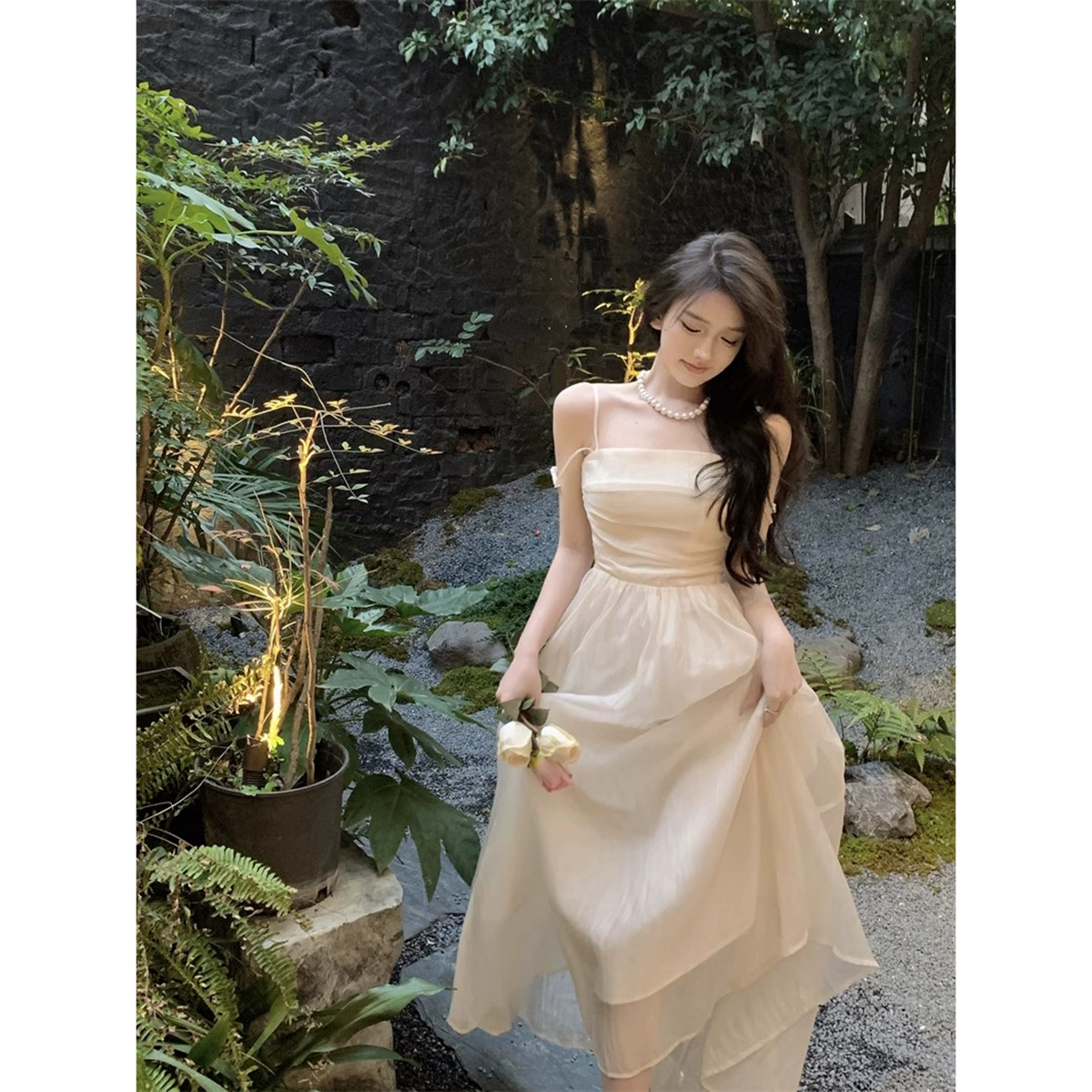 Pleated suspender dress with summer temperament and elegant tube top