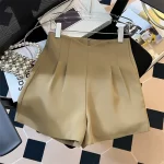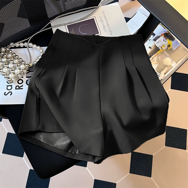 Pleated thin high-waisted casual suit shorts for petites
