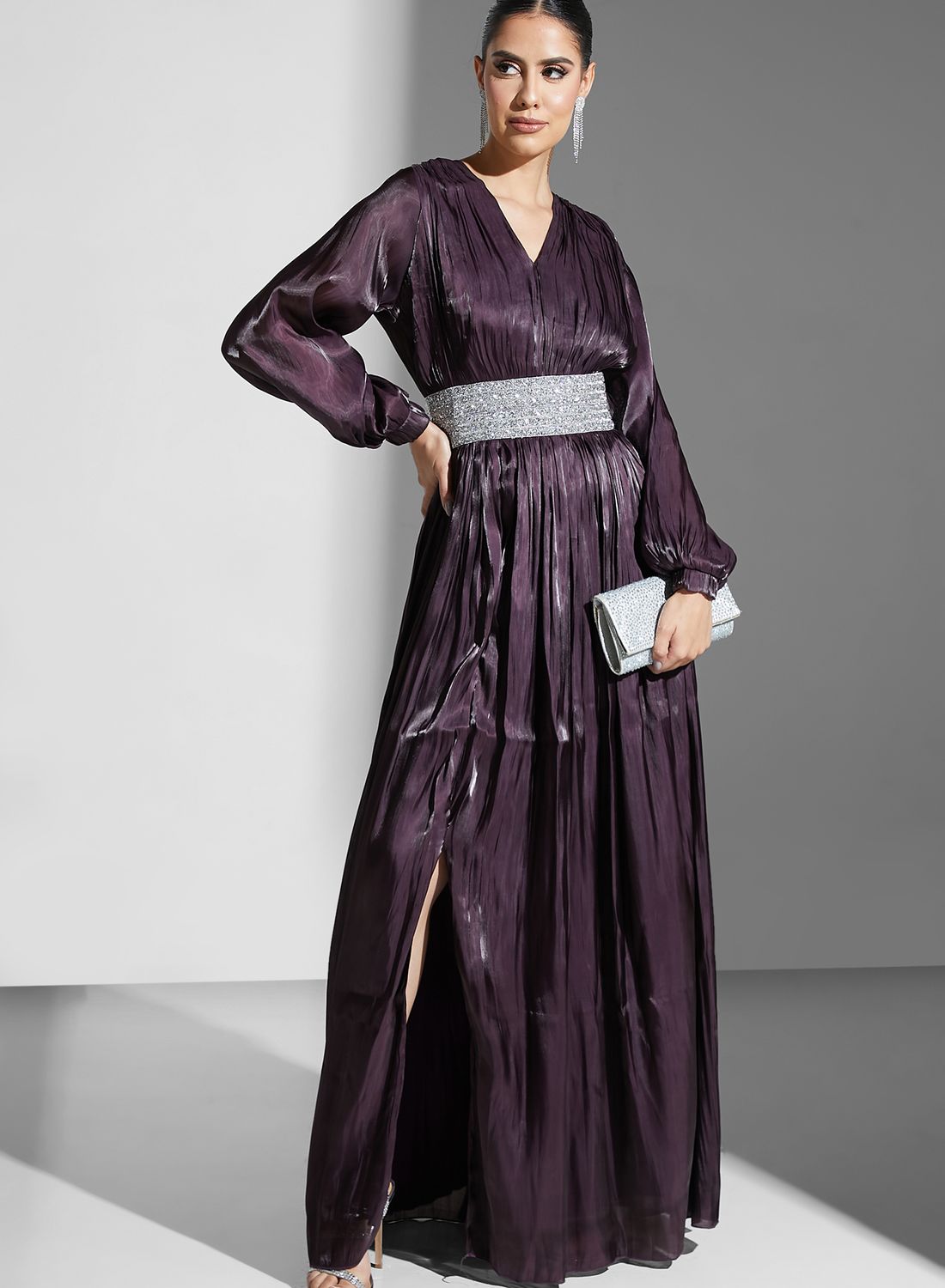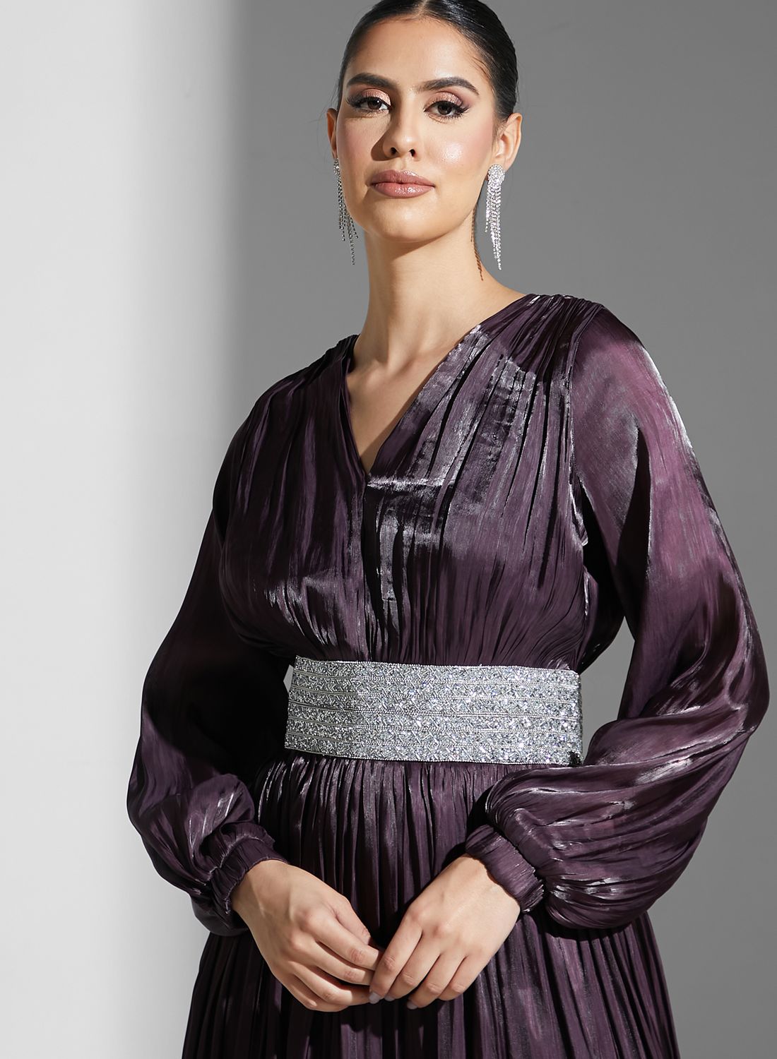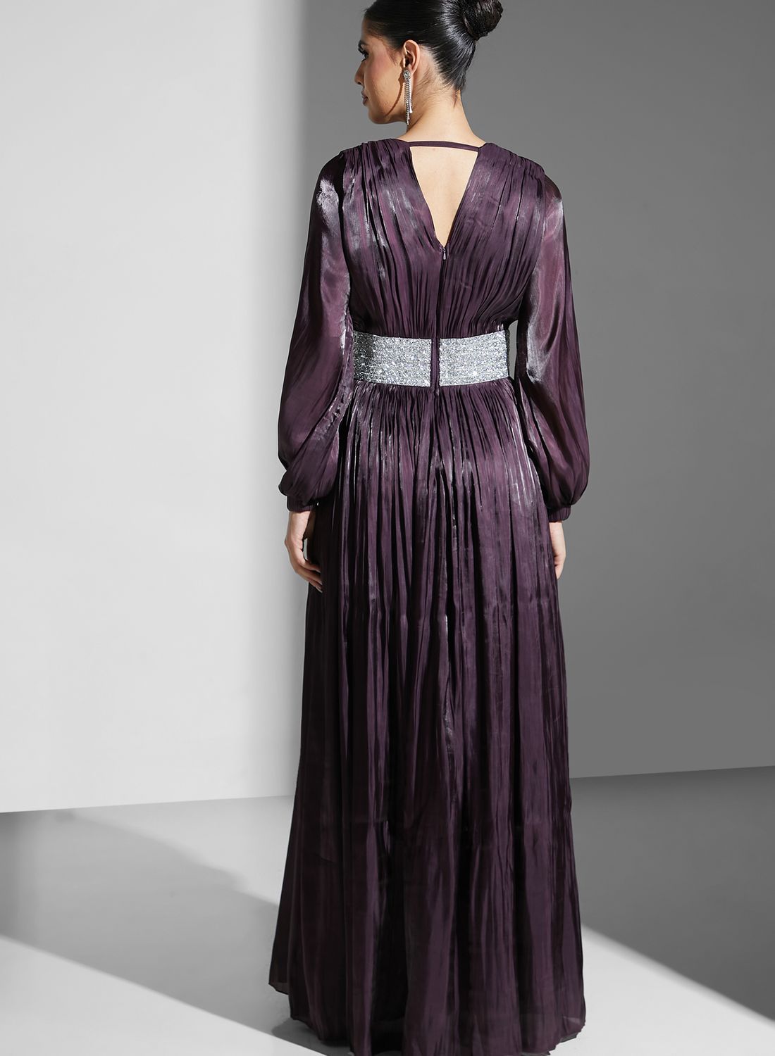 | nameOriginal | Embellished Belted Balloon Sleeve Plisse Dress |
