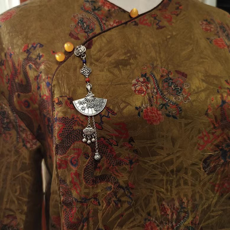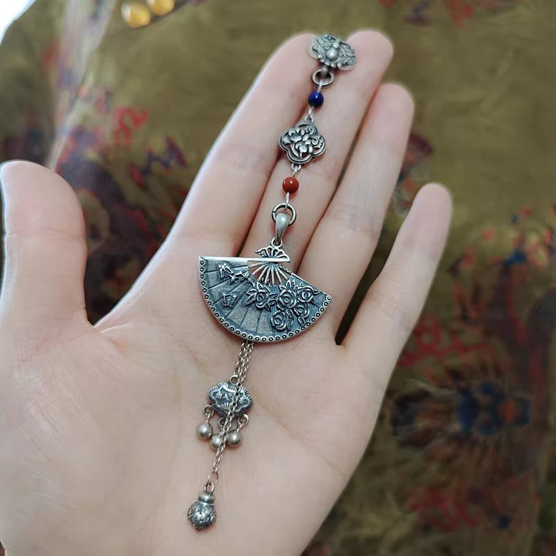 | nameOriginal | [Plum blossom fan] original retro Chinese style s925 sterling silver cheongsam placket pendant tassel Hanfu brooch accessories |
