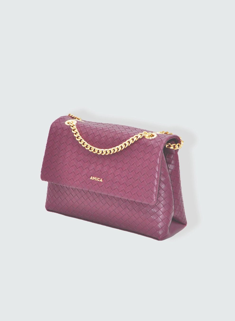 Kelly Weaved Leather Crossbody Bag -Plum Red