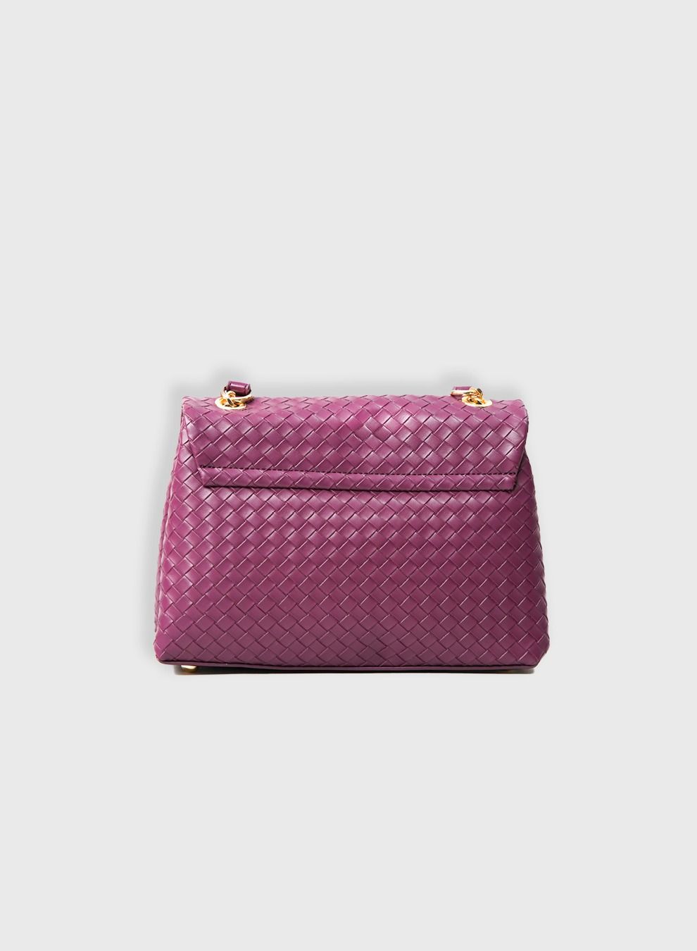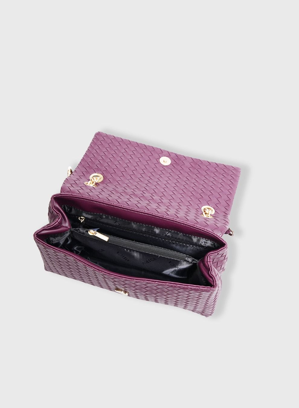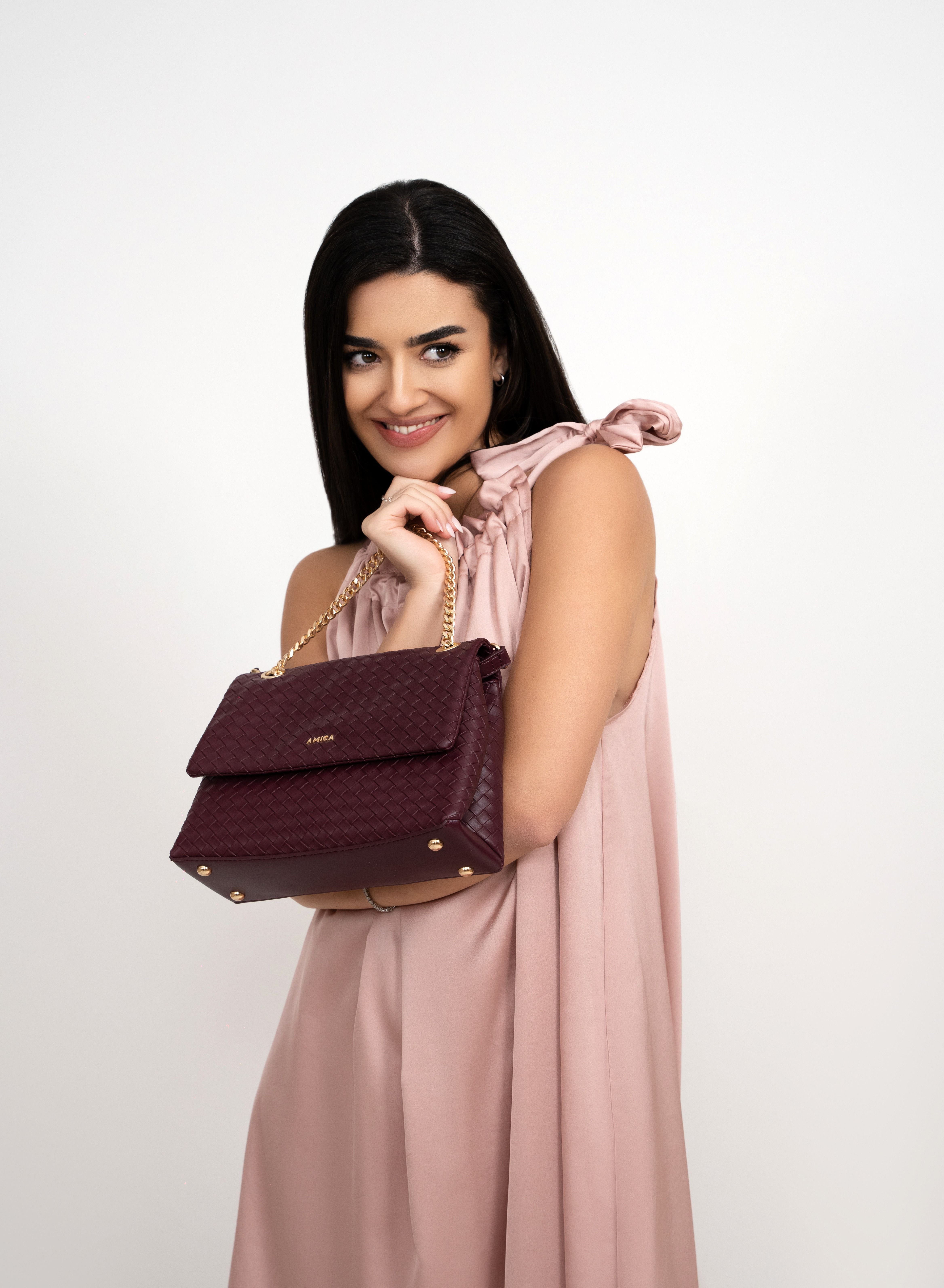 Plum Red Kelly Crossbody Bag made of woven leather.