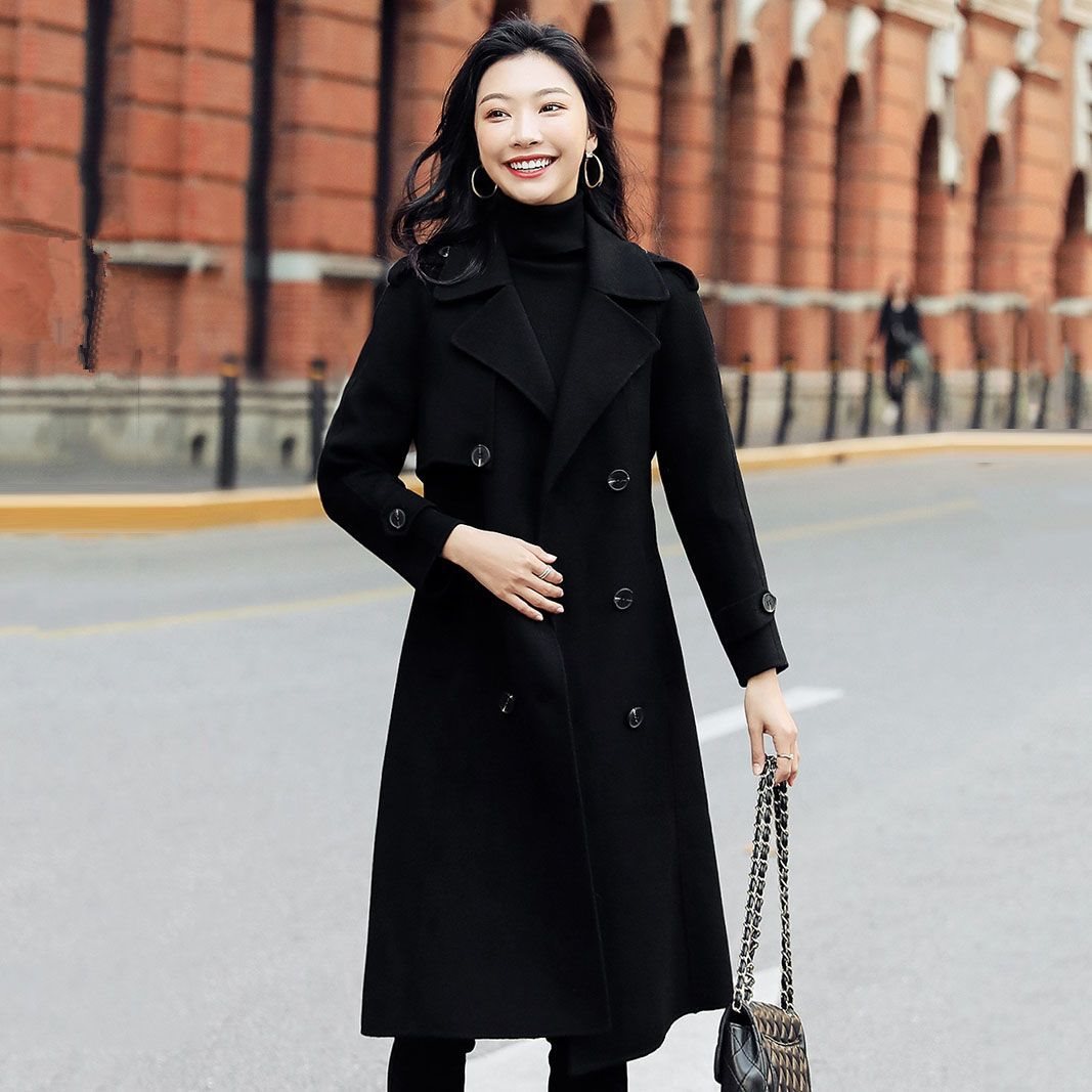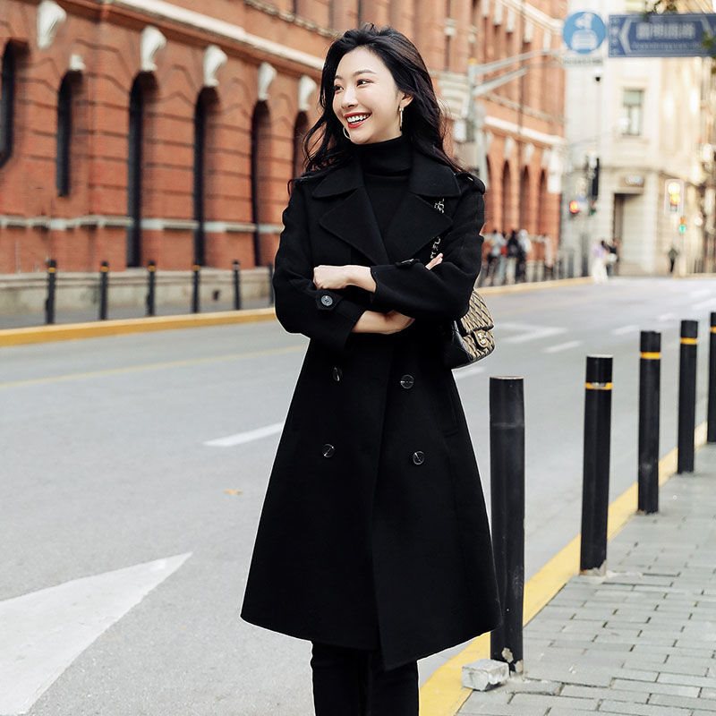 | nameOriginal | [plus cotton] black coat women's mid-length 2022 new autumn and winter high-end Hepburn wind wool coat |